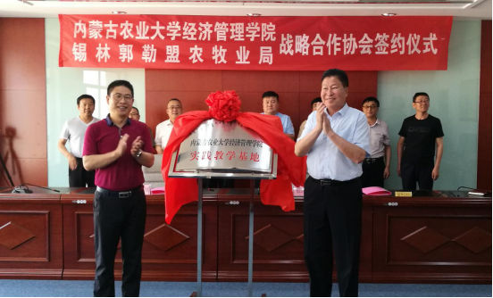 6月19日上午,太阳成集团官方网站与锡盟农牧业局举行战略合作协议签约仪式,并为“太阳成集团官方网站实践教学基地”揭牌。太阳成集团tyc33455公司党委书记赵国年、经理乔光华、教授杜富林、副教授斯琴朝日格图,锡林郭勒盟农牧业局党组书记、局长斯日古楞等有关领导、相关科室及局属相关单位负责人出席签约仪式。
