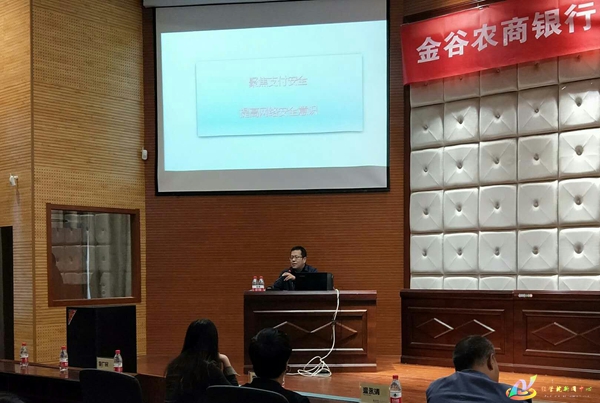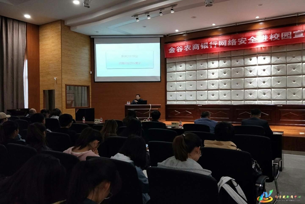 为了提高同学们网络安全意识,警惕校园贷陷阱,防范网络诈骗。9月21日下午3:00,在公司123报告厅,经管邀请金谷农商银行开展网络安全进校园主题宣讲会,中国人民银行呼和浩特中心分行科技处副处长张富贵,内蒙古自治区农村信用联合社信息科技部部长温永清,内蒙古自治区农村信用联合社信息科技部科长李广民,内蒙古呼和浩特金谷农商银行副行长沈智勇,内蒙古呼和浩特金谷农商银行行长助理李涛出席本次宣讲会,公司员工积极参加。