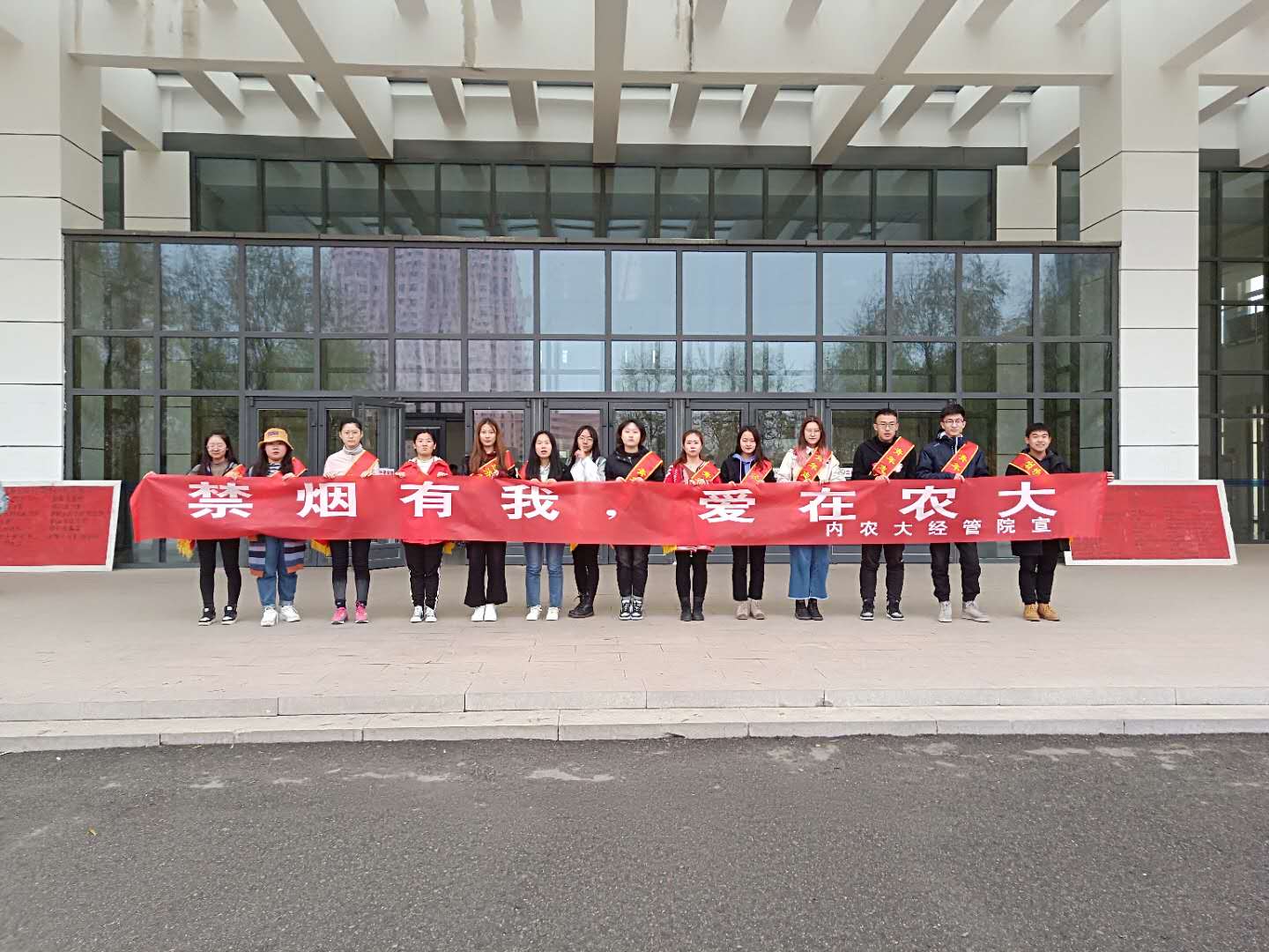 为展现经管院师生良好的精神风貌,创建干净、文明的无烟校园,公司开展为期八周的禁烟活动,本周为第三周,公司15名志愿者积极参加。