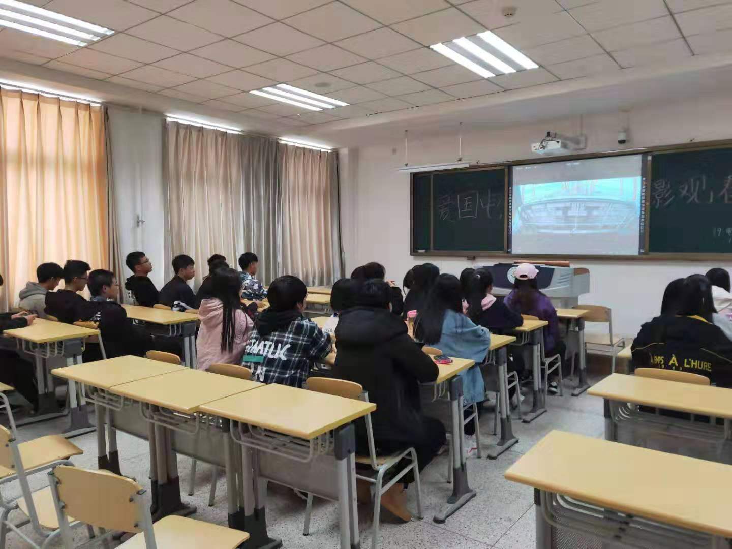 为增强同学们爱国情感和振兴祖国的责任感,传承伟大的中华民族精神,10月17日下午2:00,经管院19级电商一班于南教210组织观看“爱国主义题材电影”观影活动,19级电商一班全体同学积极参与。
