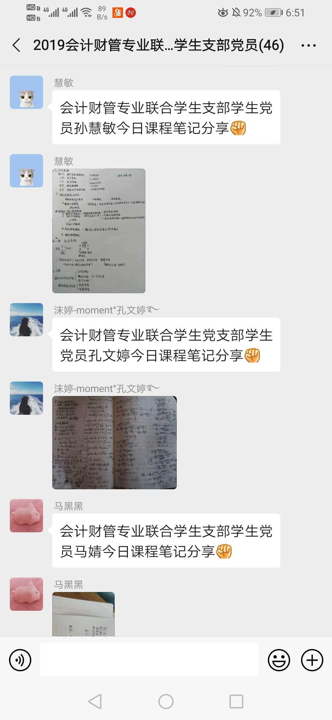 在活动过程中,党员们积极在支部群内分享每日课程笔记、学习心得以及抗疫期间的感悟,以发挥其在网络教学中的先锋模范带头作用。同时主动帮助班主任完成疫情填报工作,充分提现对疫情防控工作的责任感和使命感。值此特殊时期,员工党员不仅要做好疫情防控,更要不断地促进知识的储备,科学有序地参加疫情防控工作,展现新时代青年党员守初心、担使命的精神风采。
