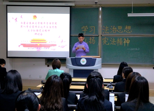 为加强宪法学习宣传教育,提升员工的宪法意识和法治素养,值此第七个国家宪法日到来之际,12月3日下午4:00,公司于南教214开展了以“深入学习宣传习近平法治思想、大力弘扬宪法精神”为主题的2020年国家宪法日专题学习研讨会,第五期青马班学员积极参加。