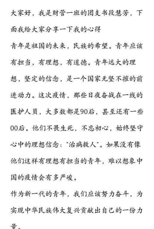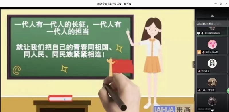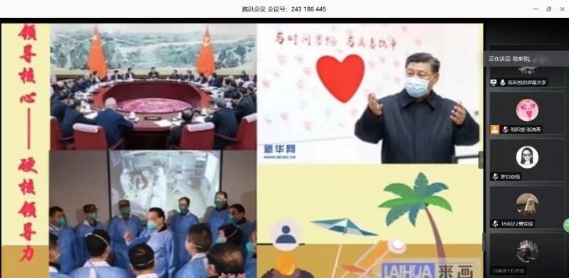 学习分享会伊始,海日罕老师带领全体团干部回顾了习近平总书记对青年一代的寄语精神,并提出期盼和要求,希望各班团支书能充分带动班级团体,积极学习习总书记寄语,坚定理想信念,发扬五四精神。她还对开展团日活动的相关事宜进行安排部署,要求各班级丰富线上团日活动的内容,提高活动质量,引导班级同学分享社会实践等有意义的活动心得,实现团日活动多样化、有效化。随后,公司组织部负责人为团干部播放团课视频,回顾疫情期间的感人事迹,感受祖国的大国优势、制度优势。员工们感受颇深,民族自豪感油然而生,并积极地同大家分享心得体会,道出了作为中国共青团团员的骄傲,同时表明将继续为祖国的建设奉献自己的青春和力量。