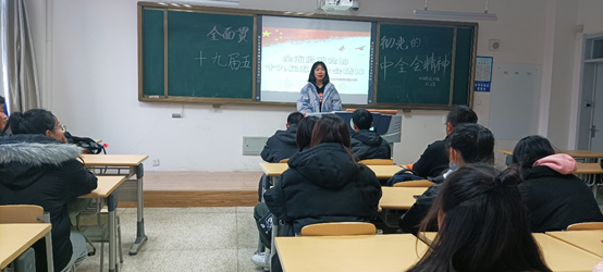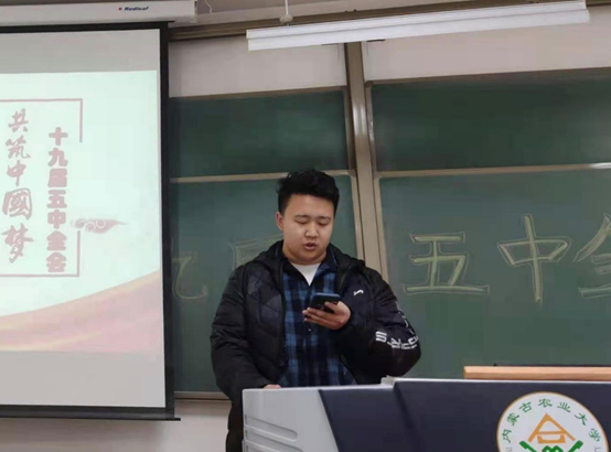 学习委员分别就青年如何用实际行动诠释报国之志、为实现2035年宏伟蓝图而勇挑重担不懈努力做出自己的心得感悟,同学们凝神细听,切身感悟,将全会精神内化于心,外化于形。