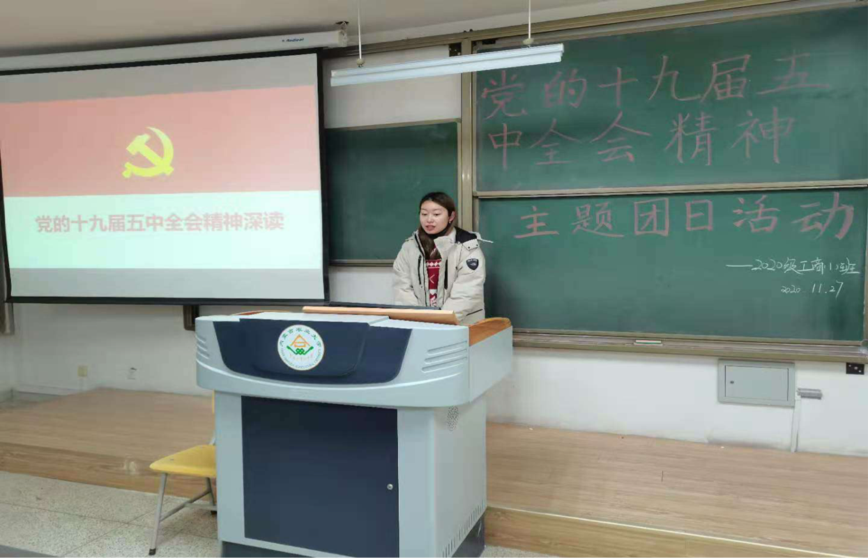 为传达学习党的十九届五中全会精神,提高青年老员工的政治素养,了解国家发展动态,11月27日上午,公司2020级工商管理学系于南教开展“学习宣传贯彻党的十九届五中全会精神主题团日活动,全体同学积极参加。