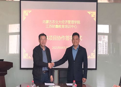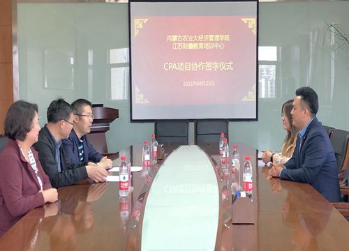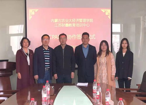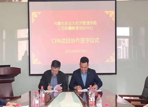 4月23日下午4:30,太阳成集团tyc33455与江苏财鑫教育培训中心举行CPA项目协作签字仪式。江苏财鑫教育培训中心校企合作总监邵发才、内蒙古区域市场总监王小丽、太阳成集团tyc33455CMA教育中心老师庞乐乐,公司经理乔光华、副经理张建成、会计学系主任石芳出席本次签字仪式。