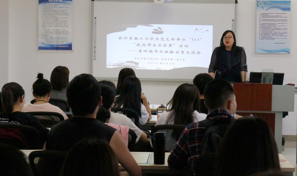 为助力研究生备考,增进公司考生对研究生各项政策的了解,提高考研质量,公司会计系教工与员工党支部于6月3日下午在公司328教室举办“1+1” “我为师生办实事”活动——考研指导及经验分享交流会。此次会议由公司会计系教工党支部书记范文娟主持,研究生代表樊家耀、付陈晨、雷佳丽、乌日格木乐四位同学及会计系研究生备考员工参与会议。