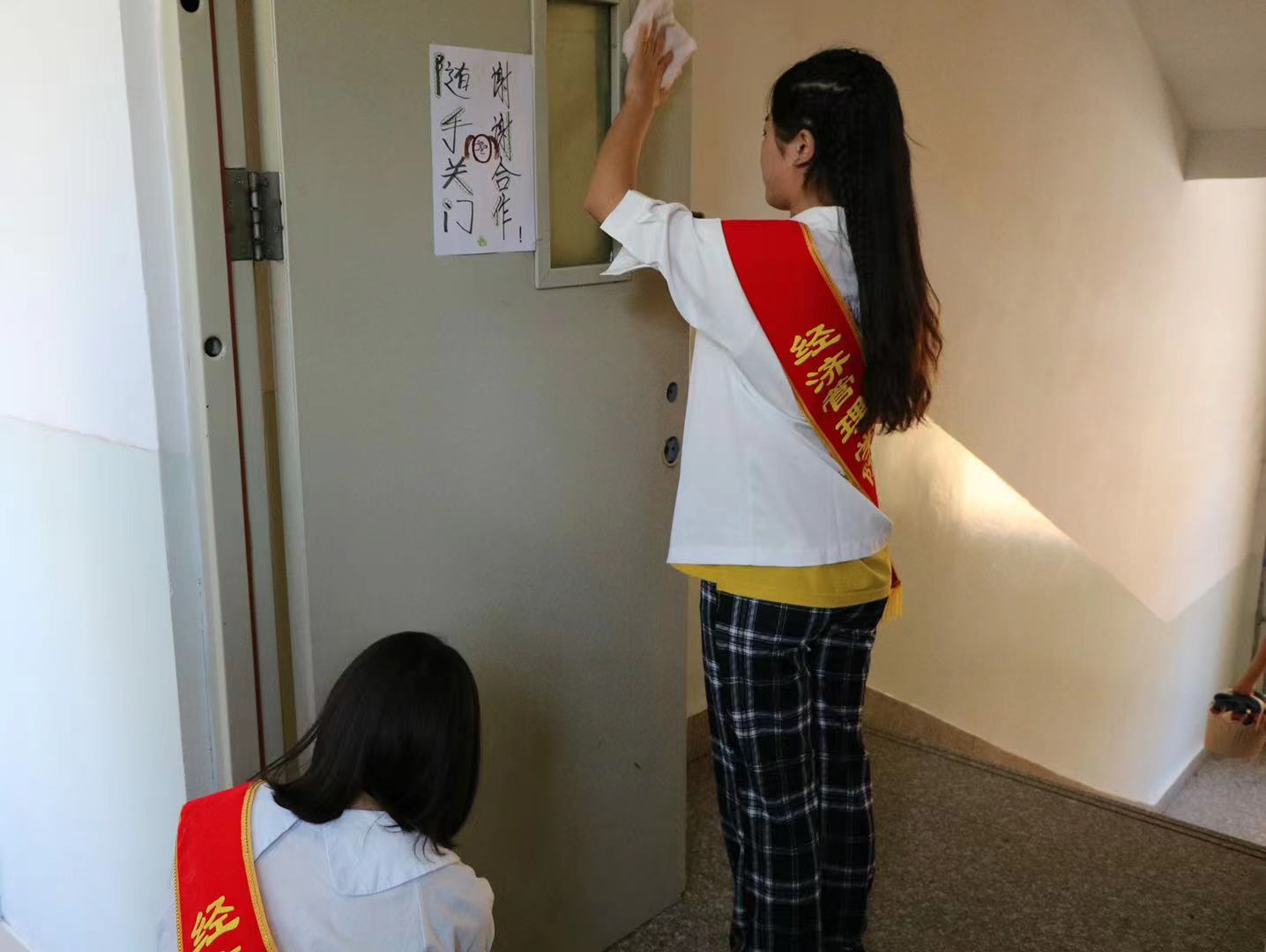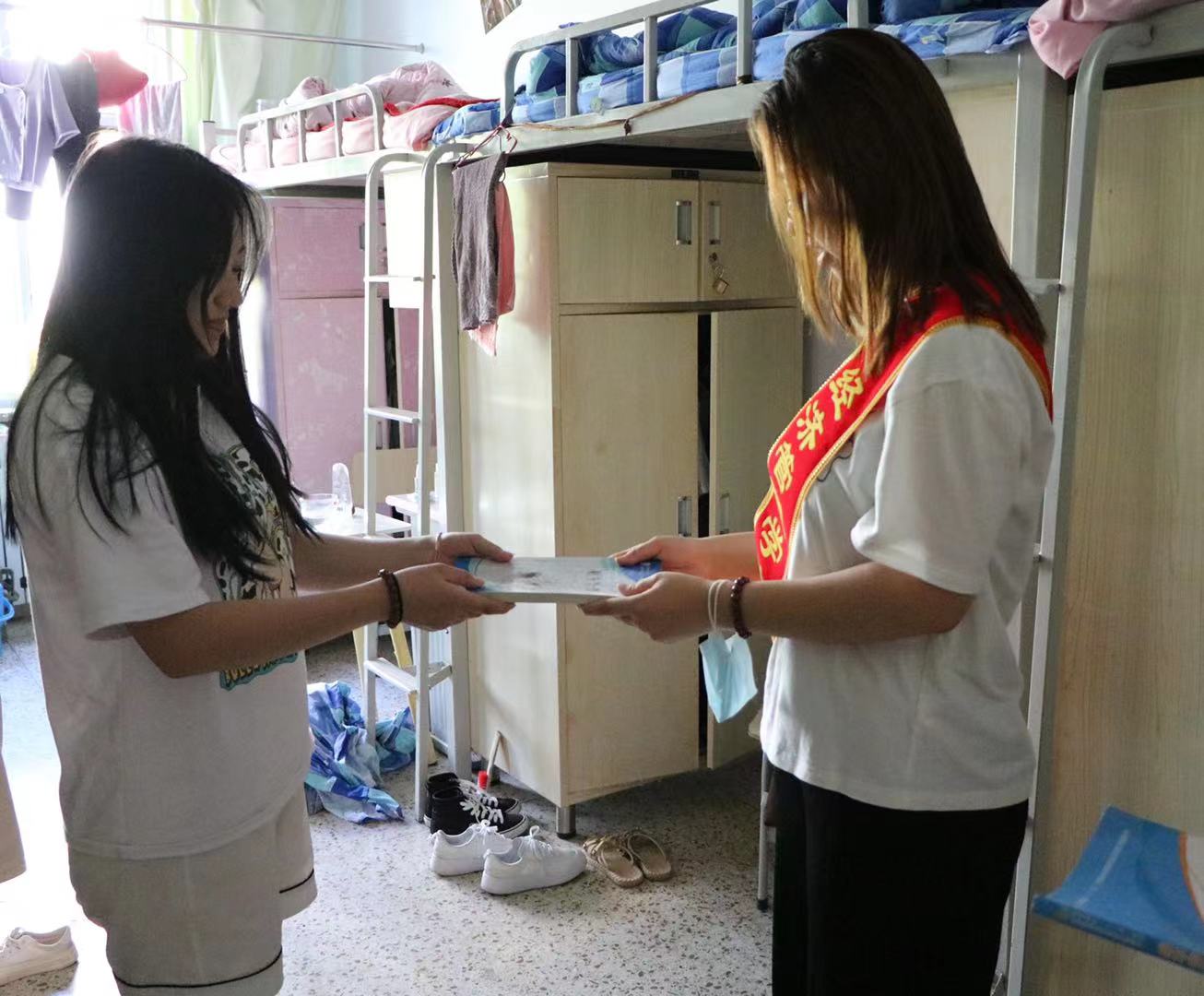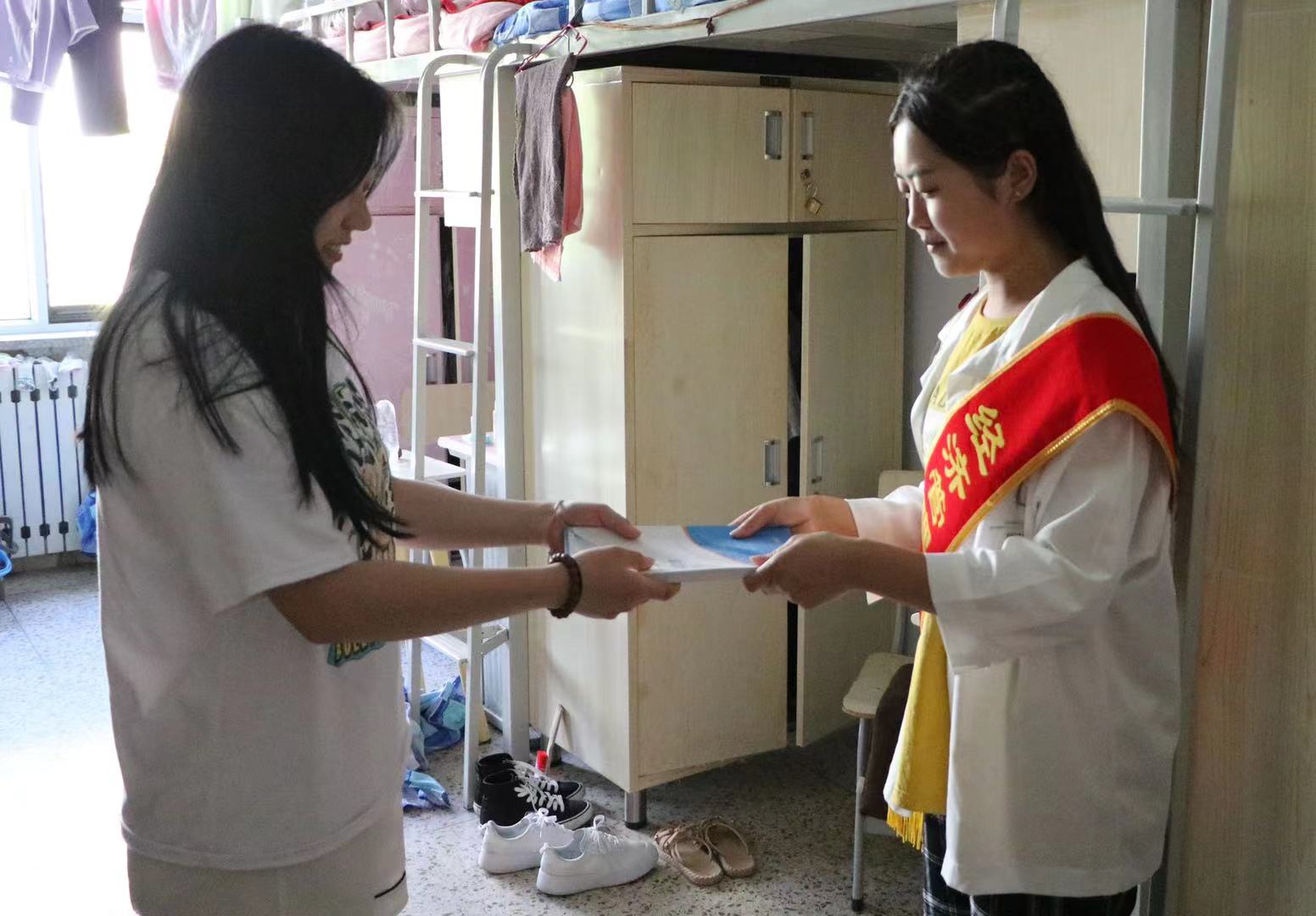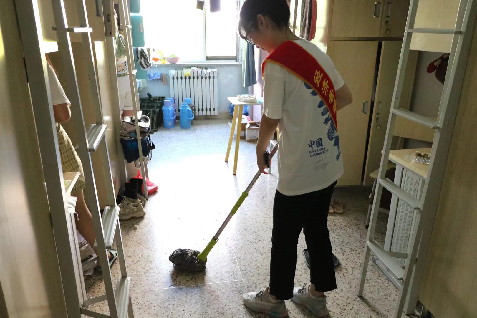 炎炎夏日送清凉,丝丝关爱寄祝愿。为保障志愿工作有序进行,志愿者分男女两队开展志愿活动,女生队伍主要负责协助毕业生打扫宿舍卫生、整理书籍等工作,减轻毕业生离校负担;男生队伍则主要负责清洁走廊、楼梯扶手、暖气片等,切实服务离校相关事宜。清理工作结束后,志愿者们帮助毕业生搬运行李,用行动为毕业生送去母校温暖,同时毕业生也将学习书籍赠予志愿者,表达了对志愿者未来学习生活的美好祝愿,现场氛围温馨融洽。