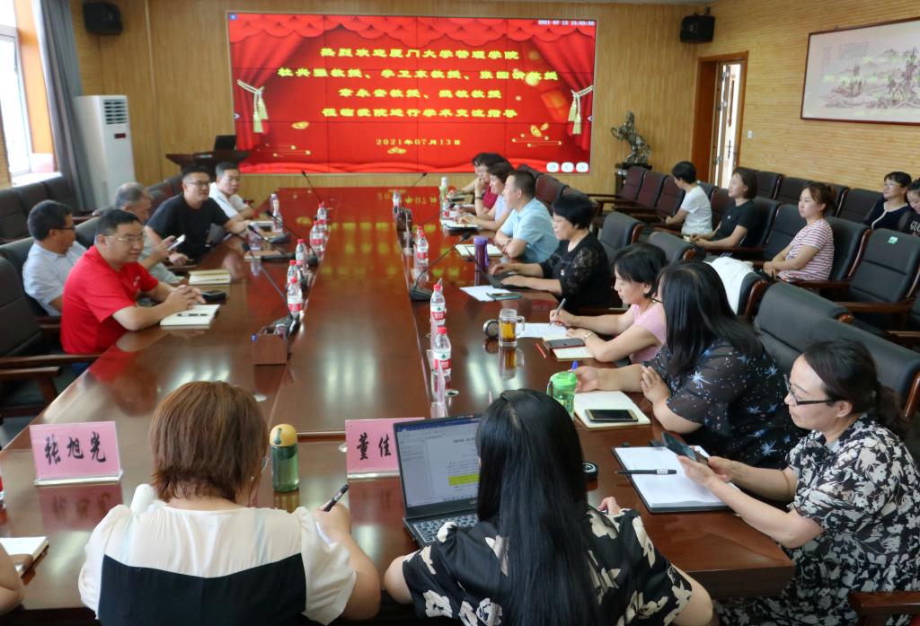 7月13日下午3:00,厦门大学杜兴强教授、李卫东教授、张国清教授、章永奎教授、魏敏教授一行莅临公司进行交流指导,会议由公司员工、厦门大学管理公司李卫东教授主持,公司党委书记王智广,公司教师及硕博研究生参加会议。