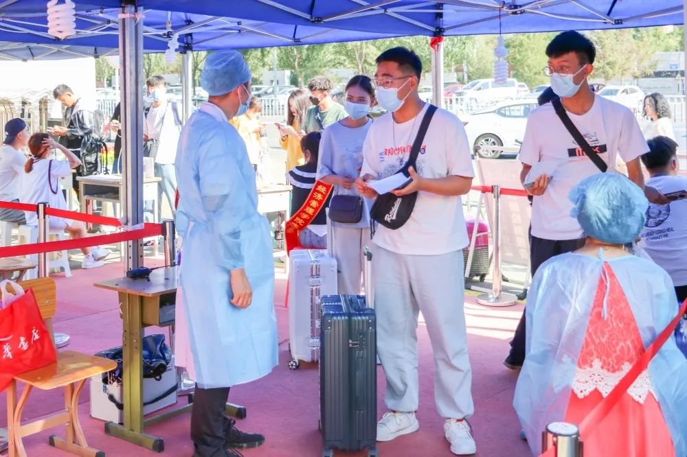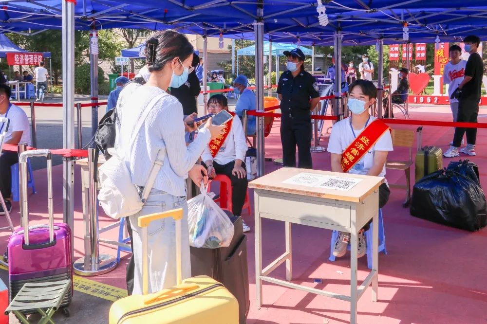 早上7点,公司返校工作志愿者已经就位,为保证返校工作优质高效进行,各部门分工协作,各司其职,返校工作井然有序。在志愿者的帮助和指引下有序排队,依次进行身份验证、体温检测、行李消毒、健康码行程码审查、核酸检测查询及易班返校填报。从报到登记处到宿舍,处处涌动着他们忙碌的身影,拉皮箱、搬被褥、收拾内务等,忙的不亦乐乎。