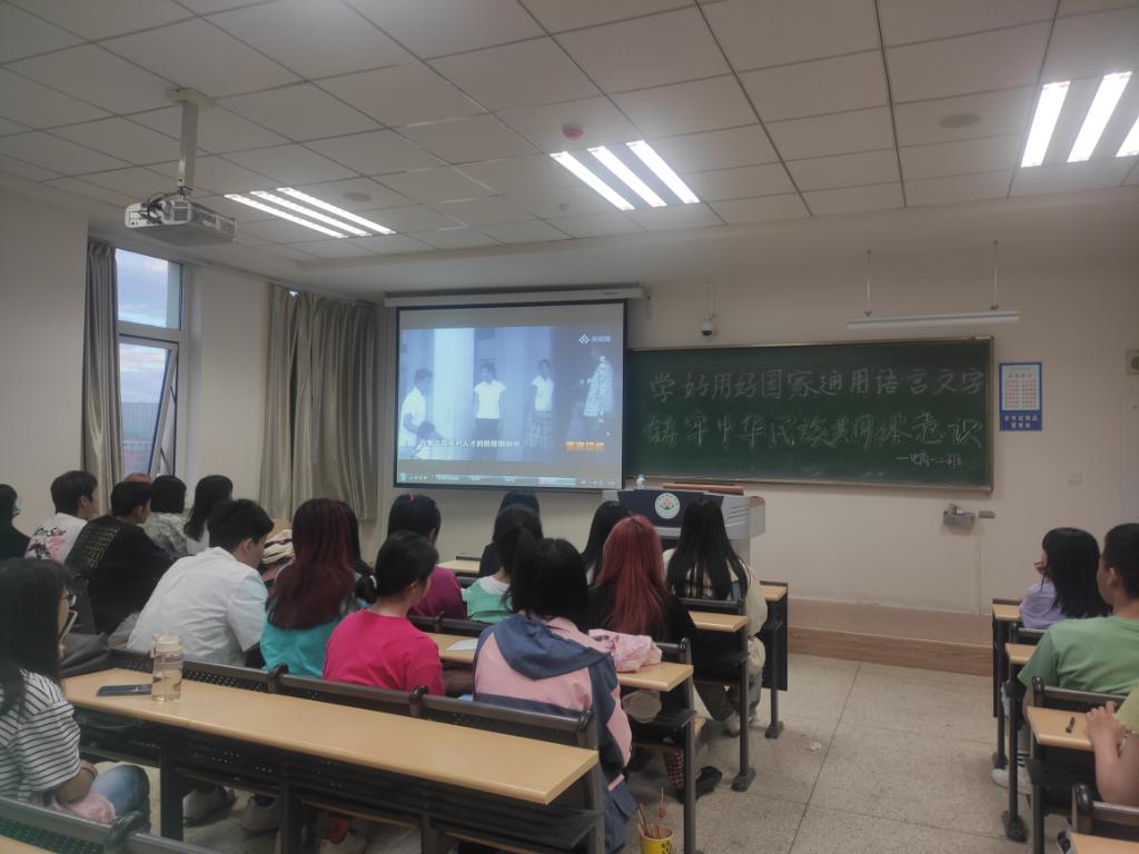 6月3日晚7:30,2020级电商管理一班于南教开展关于“学好用好国家通用语言文字,铸牢中华民族共同体意识”主题团日活动,由班委组织安排,全班同学积极参与。