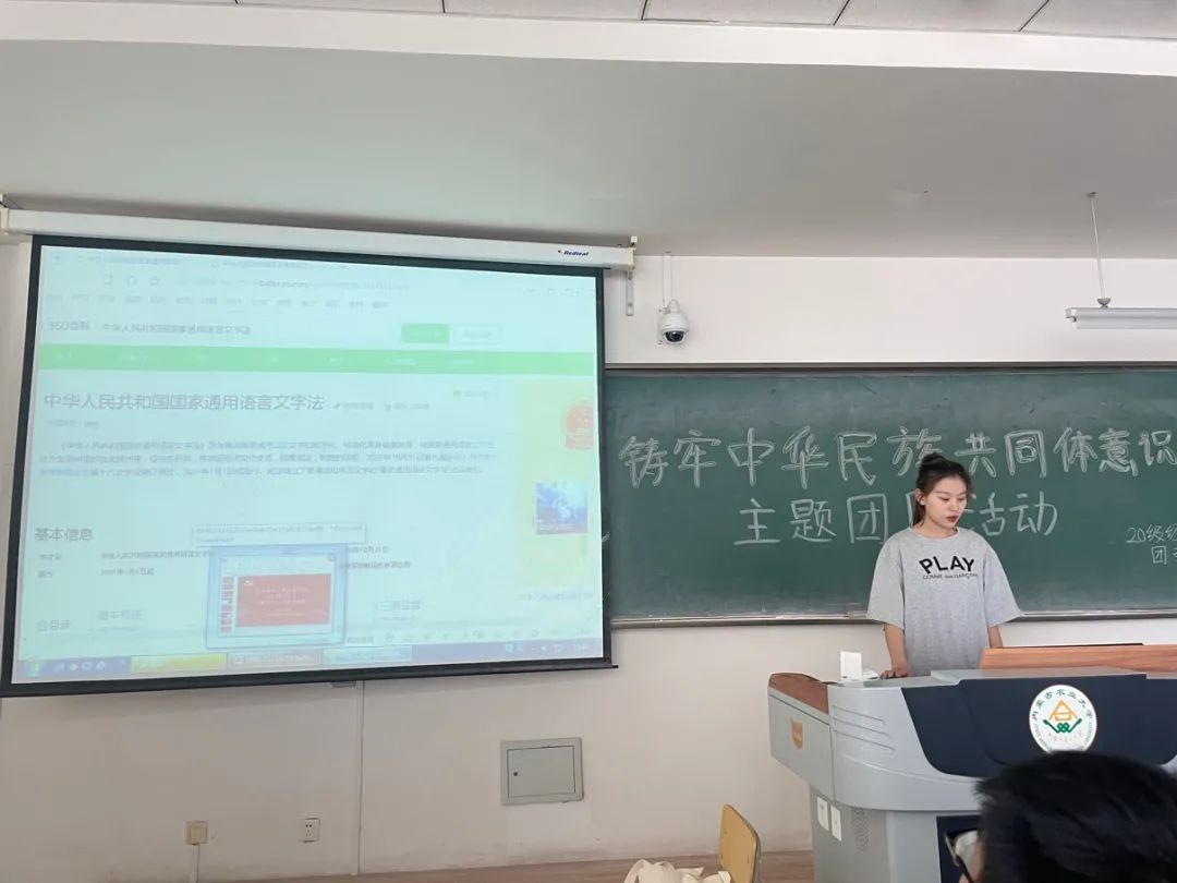 团支书带领大家理解“铸牢中华民族共同体意识”的基本思路,并观看了关于“推广普及国家通用语言文字,铸牢中华民族共同体意识”节目。节目中强调,铸牢中华民族共同体意识既要理解大与小,又要把握同与异。大与小反映意识的层次,同与异反映意识的内容,大意识要向共事靠拢以唤醒团结意识,小意识要向优异靠近以唤醒进步意识,“大同小异”才能使中华民族共同体在凝聚的基础上保持活力。经过视频学习后,同学们深刻领悟铸牢中华民族共同体意识,纷纷表示会坚定理想信念,增强爱党爱国之情,争做民族团结“石榴籽”。