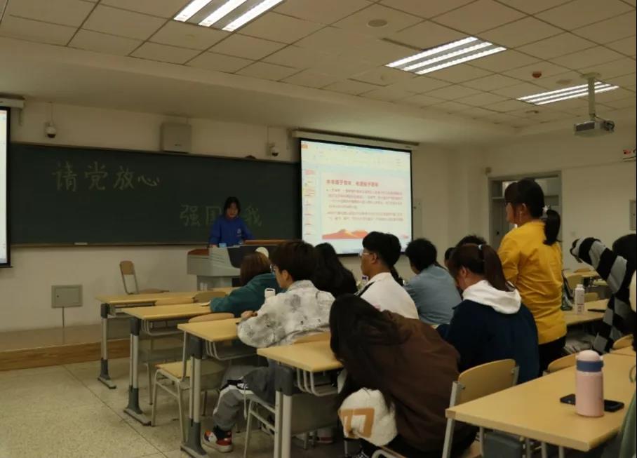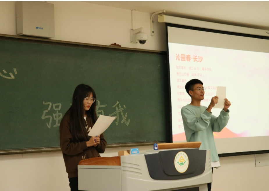 活动中,团支书详细为同学们讲解了党的建成、党的背景、中国共产党成立的历史意义、党的来源等重要知识。同学们积极分享身边关于党的故事,并选取两首毛泽东的经典诗词进行朗诵,铿锵有力、声情并茂的朗读,不禁感染了全体同学。此外,同学们还共同观看共青团中央关于“第八批在韩志愿军烈士遗骸归国”的视频,深刻了解志愿军当年抗美援朝时的艰苦条件,也认识到当今美好和平的生活来之不易,同学们表示新时代青年要以实现中华民族伟大复兴为己任,增强中国人的志气、骨气、底气,不负时代不负韶华,不负党和人民的殷切期望。