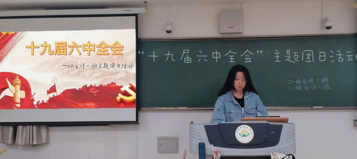 为深入学习贯彻党的十九届六中全会精神,引导团员青年坚定理想信念,11月22日晚7:00,2020级会计学一班于南教302开展“深入学习贯彻党的十九届六中全会精神”主题团日活动。本次活动由团支书主持,全体同学积极参加。