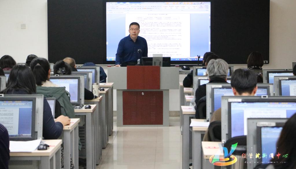 培训会上,张建成副经理围绕课程教学大纲如何与人才培养方案精准对接,以及教学大纲的内容和格式设定这两方面问题向参会教师进行了说明。他以会计学、工商管理与农林经济管理三个专业的培养方案为例,阐述了培养方案课程群里的各门课程如何精准而全面地实现培养方案中的培养目标。之后,又以《微观经济学》课程教学大纲为例,要求老师们在修订教学大纲时注重将思政元素融入课程内容中,同时,要明确课程教学目标。最后,他对教学大纲编写过程中易混易错的地方做出了说明,对教学大纲各部分的格式作出了统一的规范,对编写进度和编写质量提出了明确的要求。