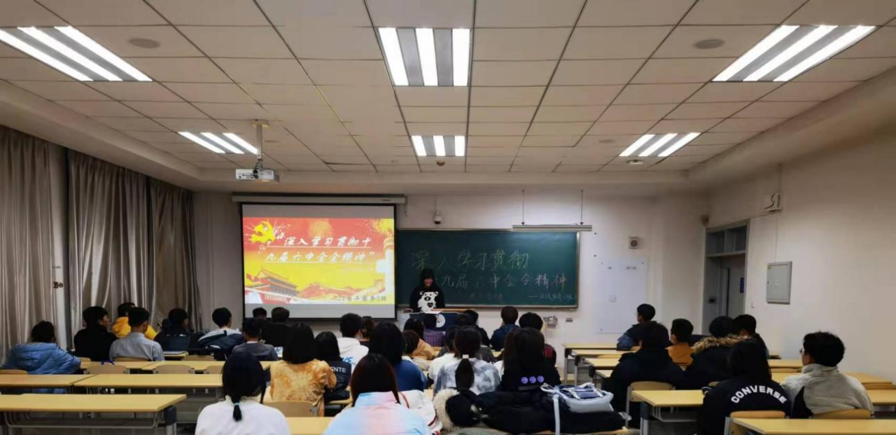 11月25日晚7:00,公司2021级电子商务三班于南教611开展“深入学习贯彻十九届六中全会精神”主题团日活动,由团支书主讲,全班同学积极参加。