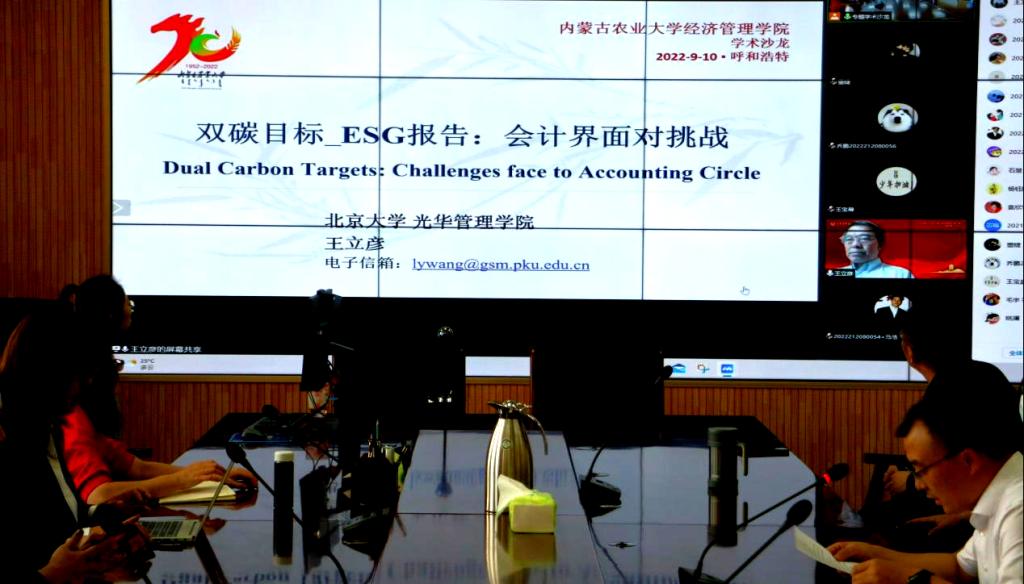 会上,王立彦教授以《双碳目标-ESG报告:会计界面对挑战》为题,从宏观、微观的层面进行背景分析,强调双碳目标是世界性的,并从财务会计与报告领域、报告与信息披露之可信度、管理会计与报告领域的碳策略与落实等角度对双碳目标下的ESG报告等方面多维地进行了系统全面的报告分析,并指出了会计界在该领域面对的挑战。