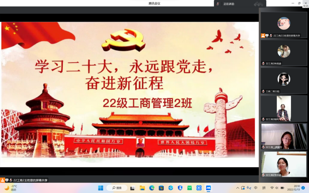 为深入学习贯彻党的二十大精神,强化广大团员青年的政治品格,引导公司学子感党恩、听党话、跟党走,12月13日,公司各团支部于线上开展“学习二十大,永远跟党走,奋进新征程”线上主题团日活动。本次活动由团支书主持,全体同学积极参加。