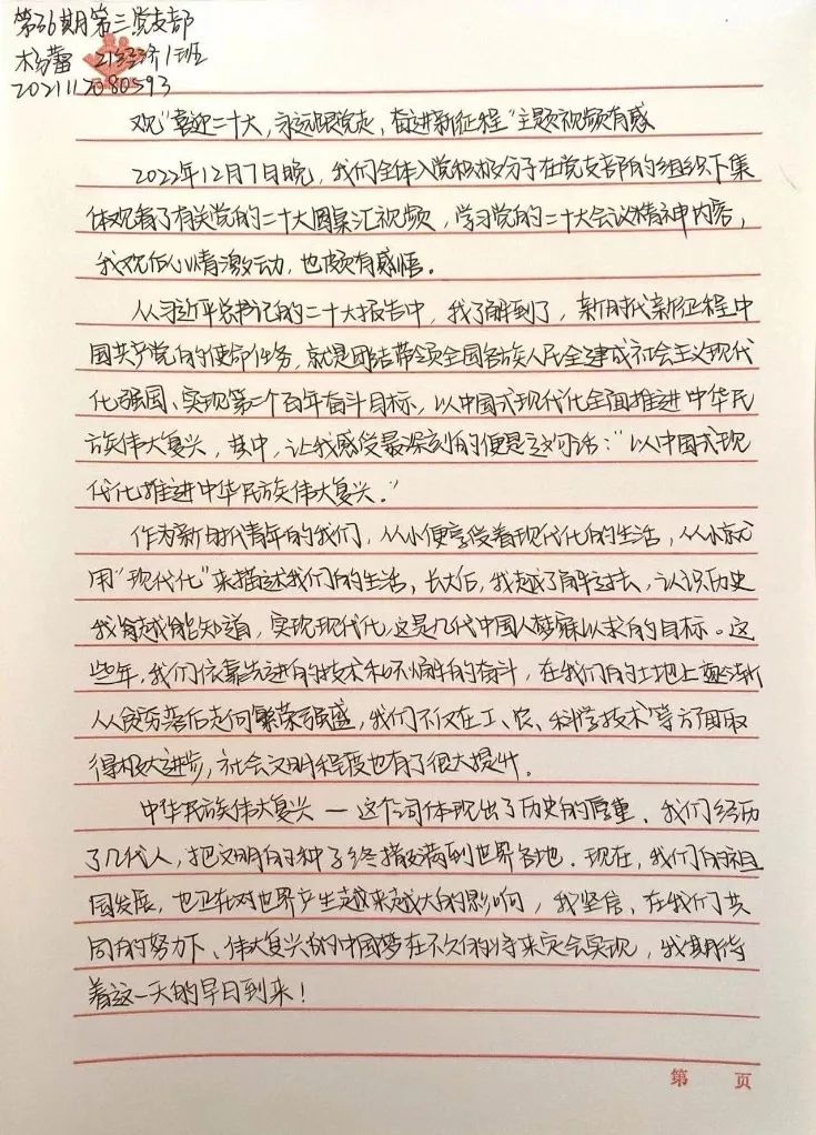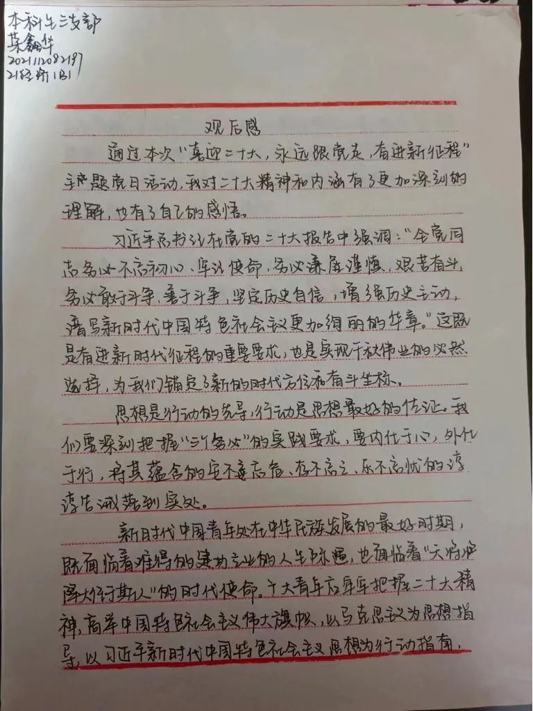 本次活动以学习宣传贯彻党的二十大精神为主线,本科生第三党支部集体观看二十大相关视频进行学习,并分享学习感悟。