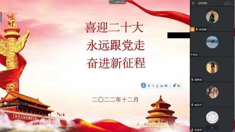 12月6日晚7:00,公司本科生第三党支部于线上开展“喜迎二十大,永远跟党走,奋进新征程”主题党日活动。经管院本科生第三党支部成员、第三十六期入党积极分子踊跃参加。