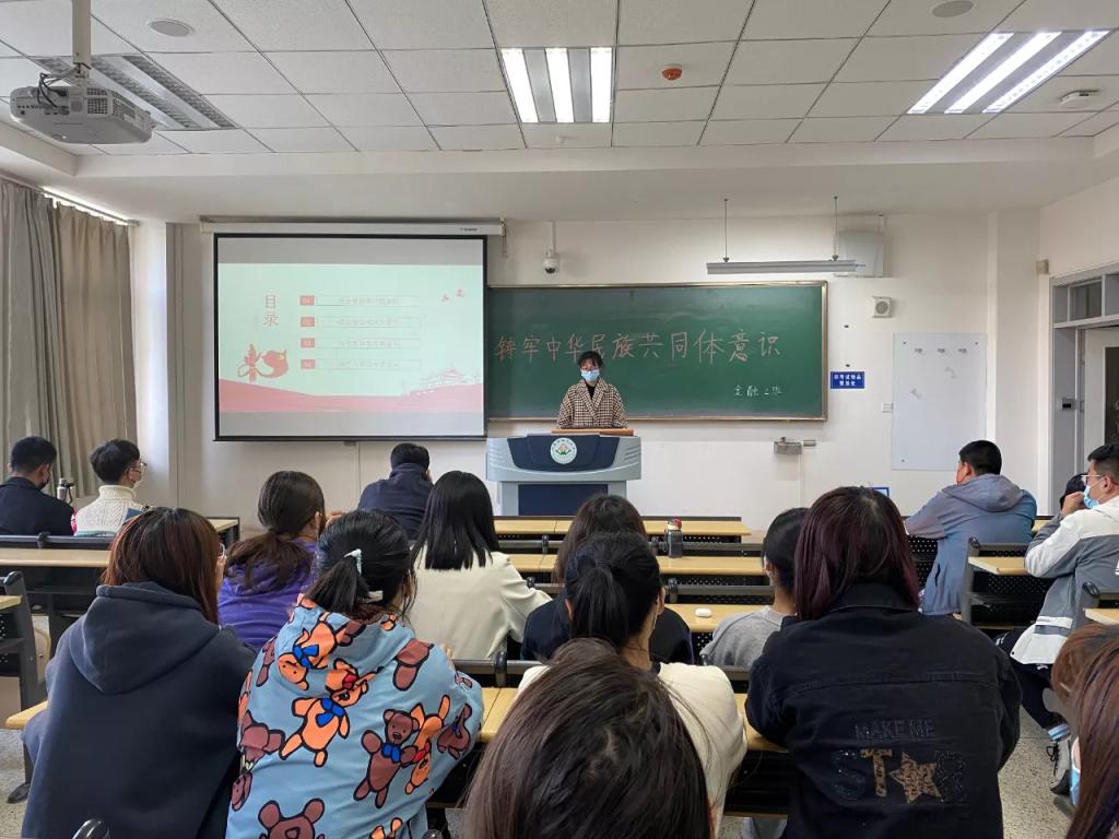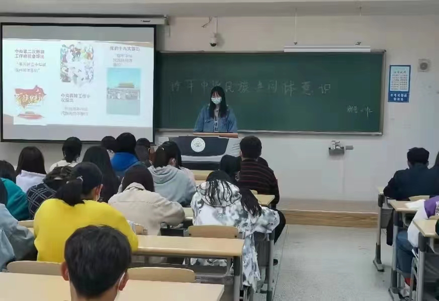 活动中,各班团支书通过PPT讲解,带领同学们了解“铸牢中华民族共同体意识”的基本思路,共同学习了中国共产党为实现中华民族伟大复兴而不懈奋斗的历史进程,了解民族团结进步事业取得的伟大成就,引导同学们牢固树立休戚与共、荣辱与共、生死与共、命运与共的共同体理念,营造民族团结良好氛围。