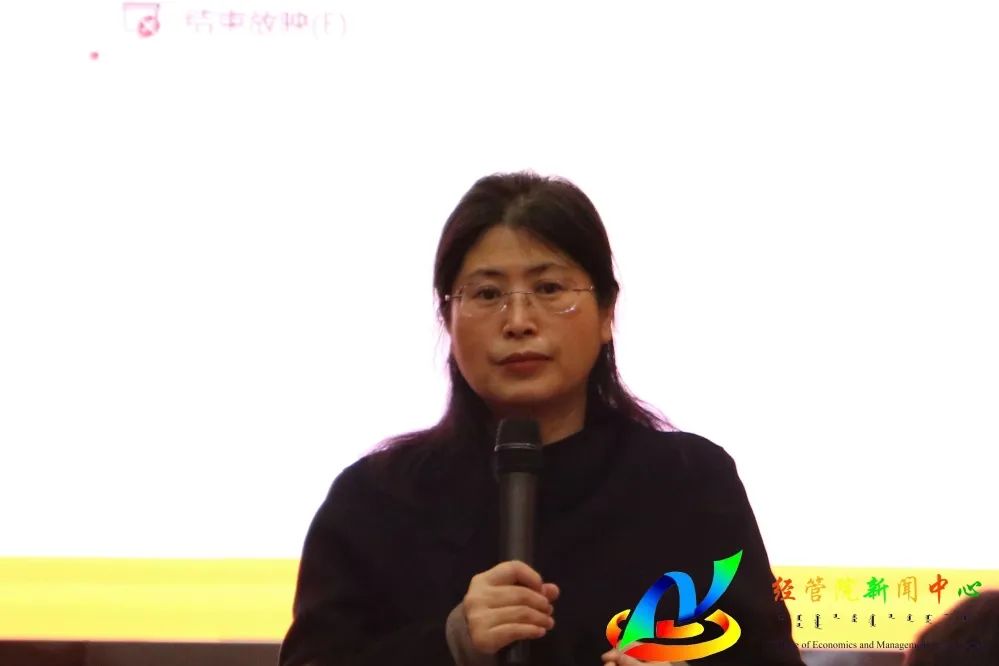 杨艳玲老师做会议总结,她表示企业模拟协会是一个帮助在校老员工真切了解企业运营管理与战略规划发展的社团,希望同学们在实践中不断增强团队协作意识和集体荣誉感,在模拟商业演练中充分锻炼自我,提升商战能力,实现学以致用。