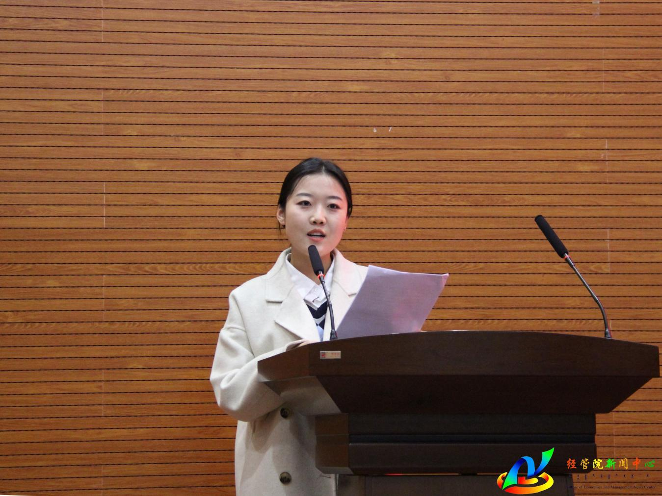 高年级员工代表2021级农业经济管理专业博士研究生王皓宇同学和一年级员工代表2023级企业管理专业硕士研究生潘婷同学作为员工代表分别发言,为新入学的同学们分享了自己在学术科研方面的心得、未来规划等。他们表示会努力珍惜读研时光,作勇敢的追梦人,并希望同学们在今后的学习生活中努力认真,谦虚奋进。
