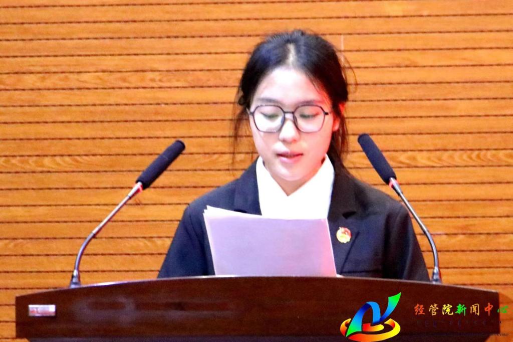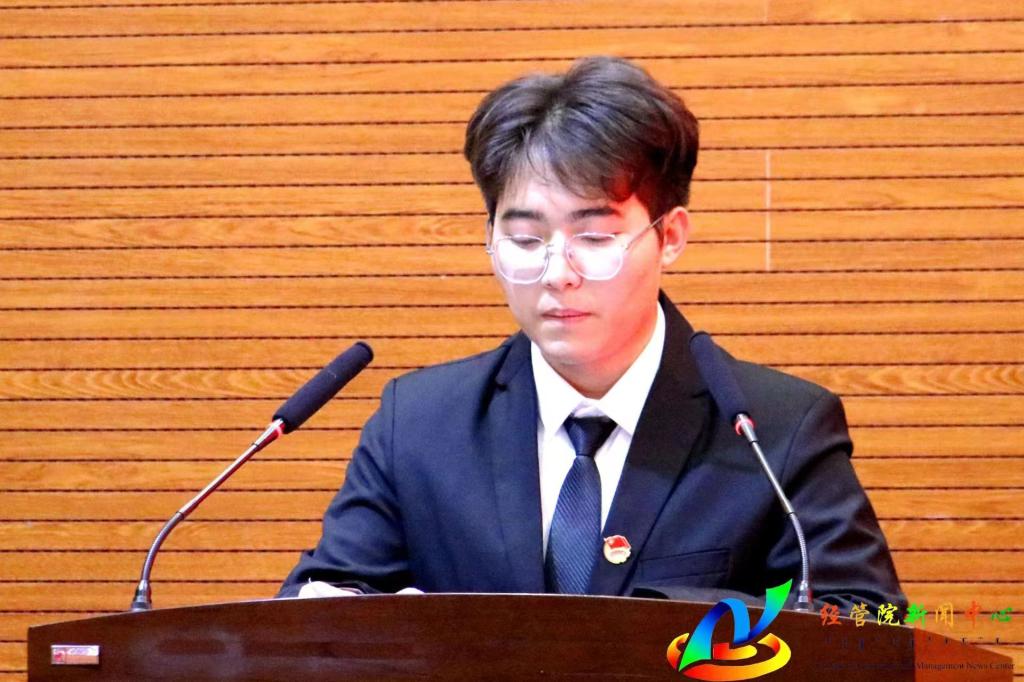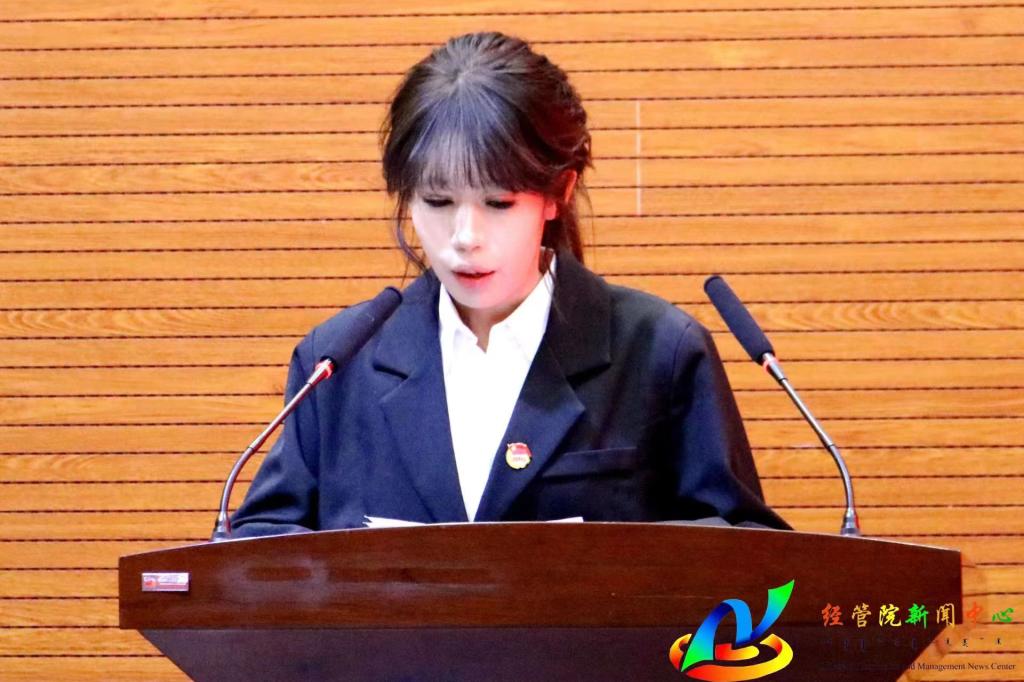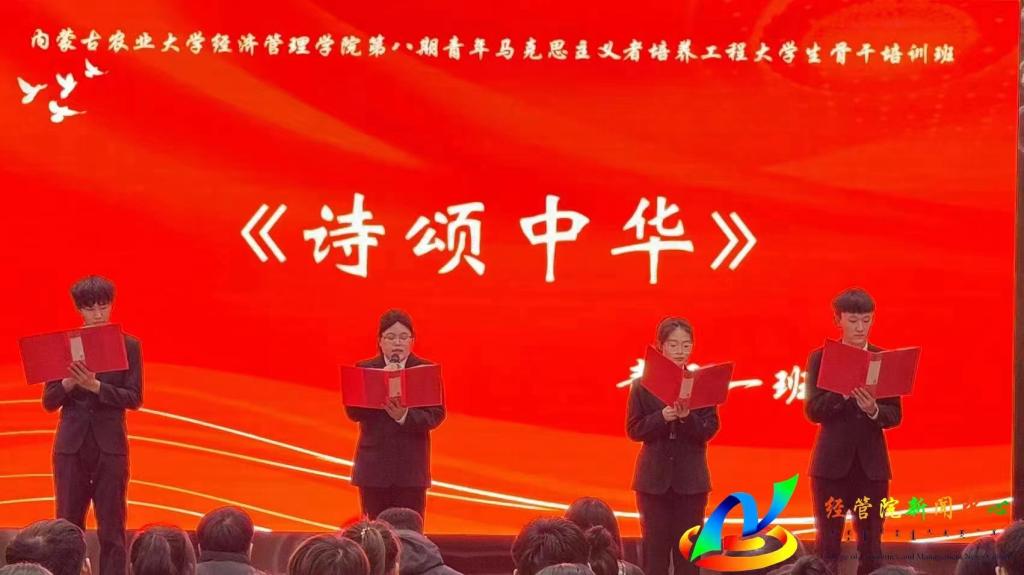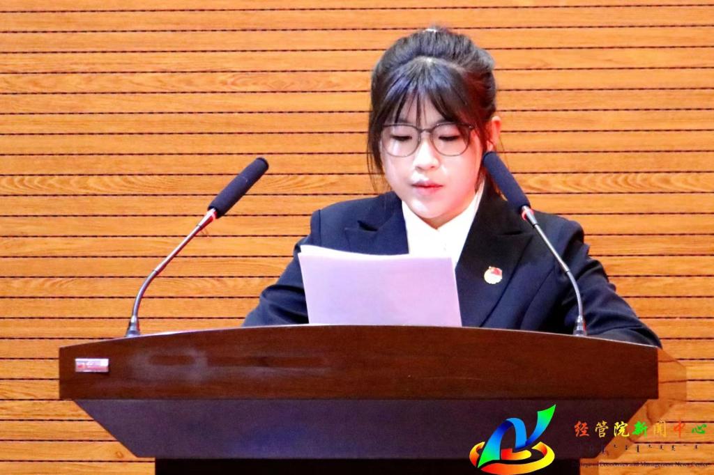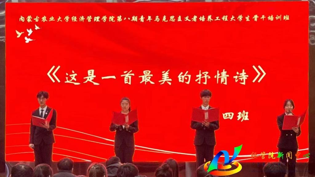 结业仪式在庄严的中国共青团团歌《光荣啊,中国共青团》中拉开帷幕。首先,青马一班至四班分别依次进行了汇报表演《诗颂中华》《我的祖国》《祝福你,祖国》和《这是一首最美的抒情诗》,铿锵有力的朗诵声充分彰显了青马学员的坚定与热忱。其次,各班结业学员代表发言,他们表示会继续加强对马克思主义的学习,提高政治理论水平,从而更好地了解国家政策、社会动态和国际形势,努力成为中国特色社会主义事业的合格建设者和可靠接班人。