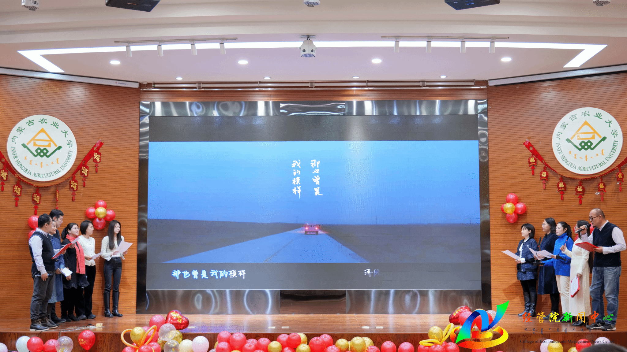 元旦联欢晚会在喜气洋洋的在红毯秀中拉开帷幕,许驭书记和乔光华经理致辞,从党建工作、教学科研、团队建设、工会工作等十个方面总结了公司2023年取得的成绩,寄语全体教职工团结一心,再创佳绩。接下来,公司教职工带来一场精彩纷呈的晚会表演:行政老师们的小合唱《歌唱祖国》,唱出了浓厚的爱国情怀和强烈的民族自豪感;市场营销系的诗朗诵《我爱上班》,以幽默诙谐的风格赢得了大家的阵阵掌声;会计系的《相亲相爱》,唱出一幕幕温暖有爱的大家庭画面;经济学系盖志毅老师声情并茂朗诵的《春天后面不是秋》,令人回味无穷;农林经济管理系和经济系的走秀节目《谁不说俺家乡美》,展现了老师们工作之余的魅力;金融系的《平凡之路》,唱出了坚持与勇气;员工韩涵演唱的《new boy》,充满着青春的活力与生命力;贾润林老师的《泪蛋蛋掉在酒杯杯里》,展现了高超的唱功与方言魅力;工商管理系带来的表演节目《谁还不会点乐器》,惟妙惟肖的“乐器演奏”,引得全场笑声不断;新进教师的《明天会更好》,唱出了对未来的美好憧憬与希望。