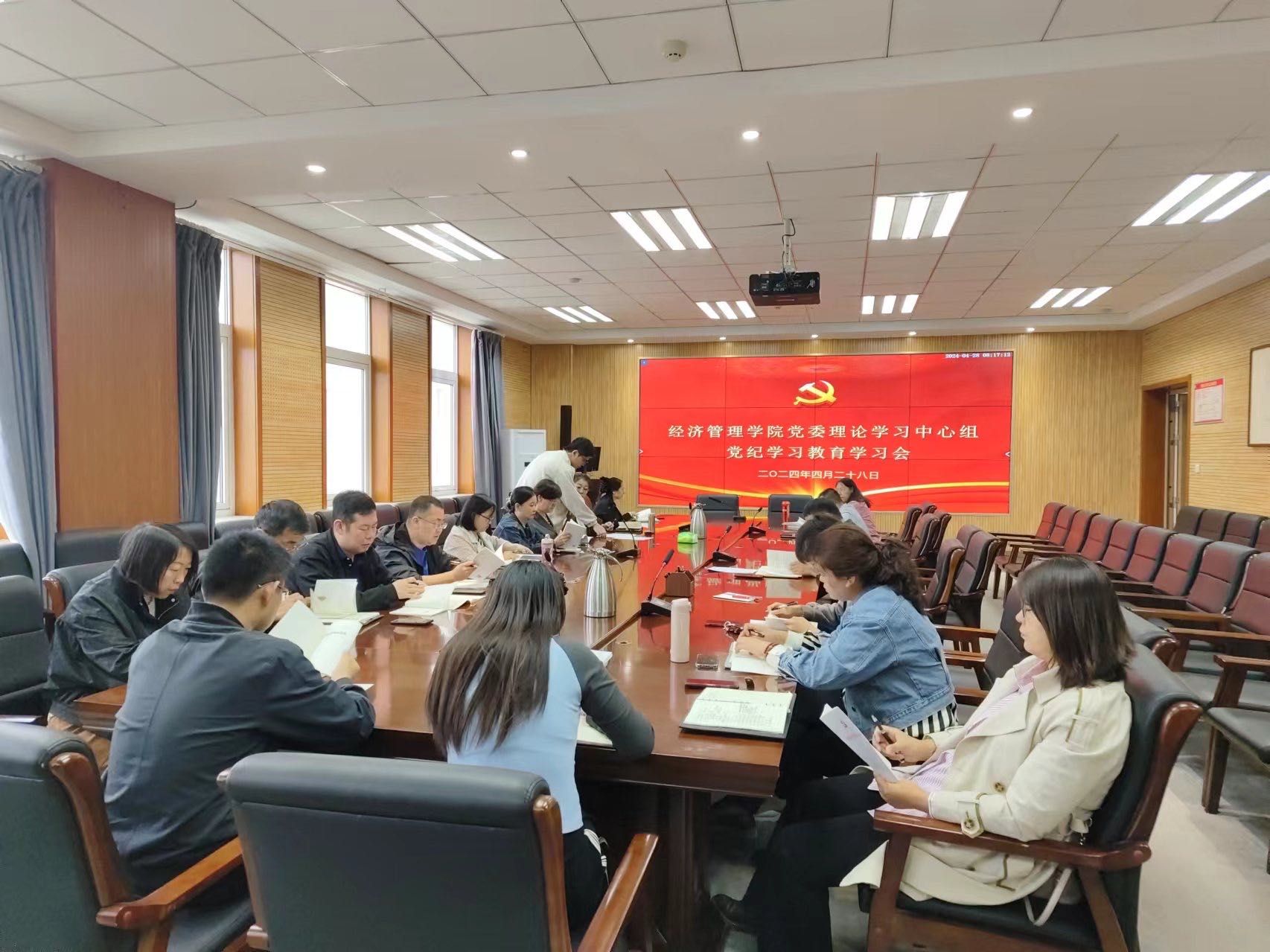 4月28日上午8:30,公司党委理论学习中心组于公司519会议室召开党纪学习教育专题学习会,许驭同志领学,公司党委委员、师生党支部书记及支部委员参加学习会。