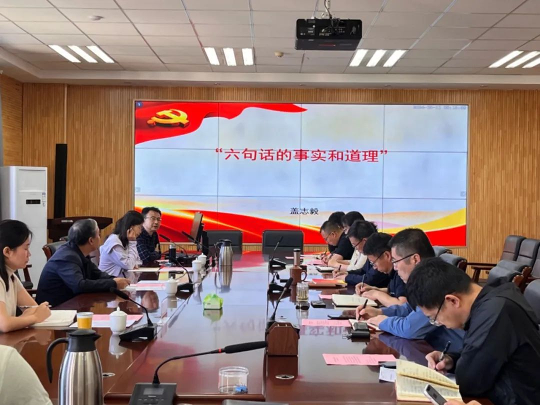 首先由盖志毅教授作《六句话的事实和道理》专题报告,盖老师从三个维度讲解“六句话”出台的背景,深入解读“六句话”的内涵和现实意义,既有理论高度,又有对公司、公司发展的思考,有助于深刻理解“六句话的事实和道理”,增强铸牢中华民族共同体意识。接着,公司党委理论学习中心组成员结合个人分管工作和体会收获分别作交流研讨;左合君同志点评时讲到,研讨会主题选的好,理解到位,强调要持续准确把握两条主线,将铸牢中华民族共同体意识作为人才培养的主线,与公司定位、人才培养质量、师德师风、新出台的规章制度结合起来,把控风险点,全面推进本科公司产品审核评估工作。
