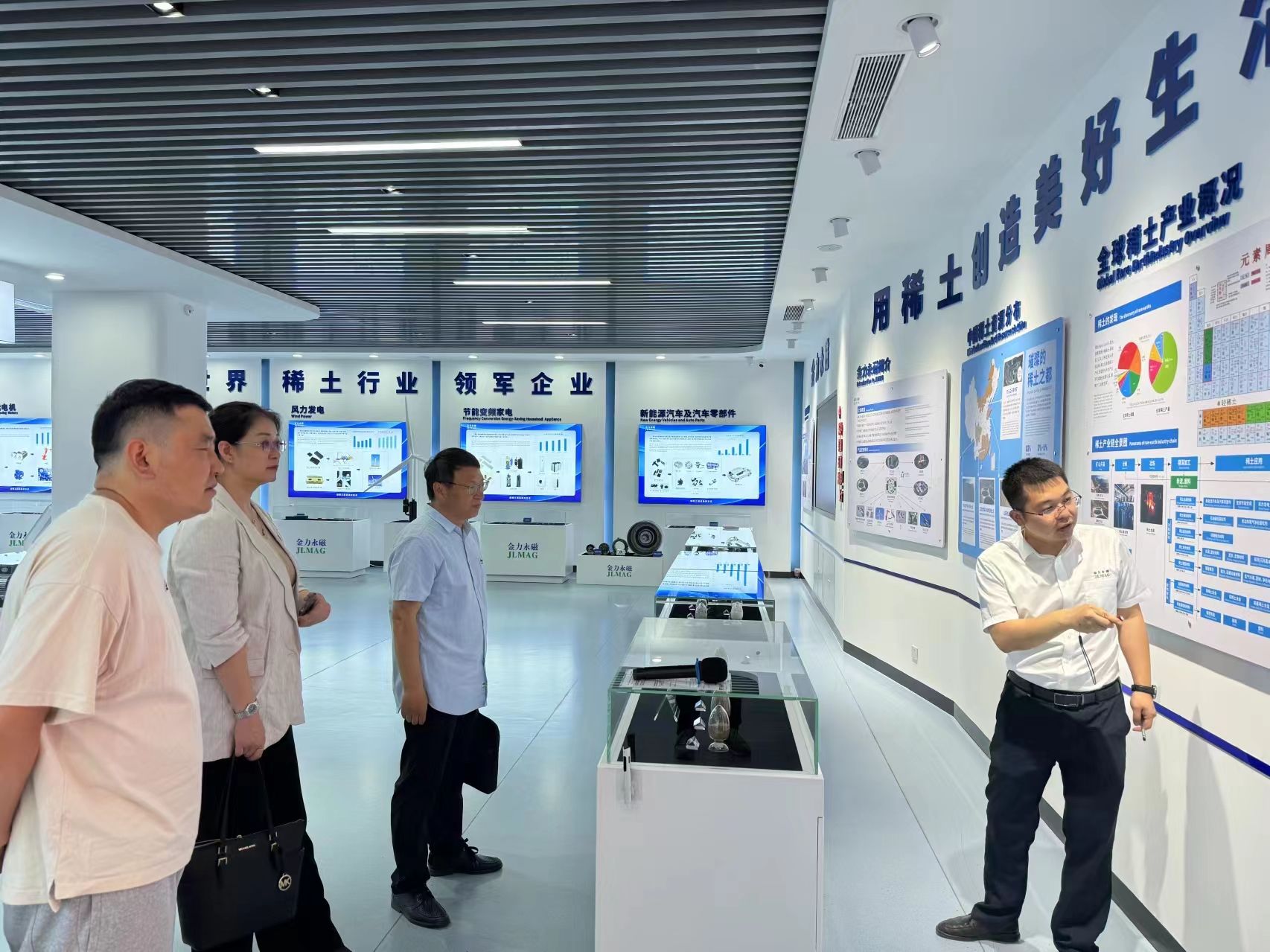 许驭同志一行先后赴中国北方稀土(集团)高科技股份有限公司、包头钢铁(集团)有限责任公司、金力永磁包头科技有限公司、南高齿(包头)传动设备有限公司、内蒙古铧瀛智租科技有限公司,参观企业办公与生产环境,进行座谈交流,就各自基本情况进行简要介绍,双方重点围绕人才培养、毕业生就业以及深层次合作发展等进行友好交流。