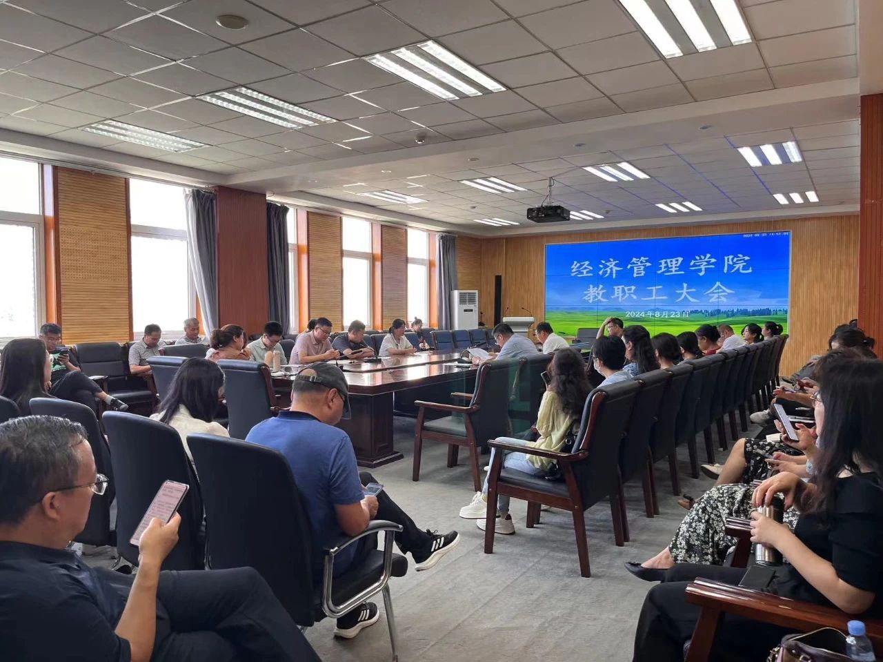 会上,许驭同志传达8月22日中共中央举行纪念邓小平同志诞辰120周年座谈会会议精神,要求全院师生继续深入学习运用邓小平理论,同深入学习贯彻落实党的二十届三中全会精神结合起来,为实现中国式现代化贡献力量;传达自治区教育厅和公司安全工作会议精神,强调要常态化抓好政治安全、意识形态安全,坚持不懈开展师德师风教育,大力弘扬教育家精神,为员工上好开学第一课,紧盯身边小事,及时处理舆情,扎实开展安全隐患排查,做好各项工作;通报毕业生就业工作推进情况。乔光华经理部署毕业生就业及教学审核评估工作,强调要加强教学课堂管理,以严谨求实、精益求精的状态完成教学审核评估。斯日古楞副书记安排开学后请假事宜以及新生报到、军训工作。张建成副经理围绕日常教学运行、专业建设、实践教学以及审核评估工作作了详细安排。柴智慧副经理布置研究生导师遴选工作、研究生教学以及科研工作,强调常态化开展科研诚信教育。