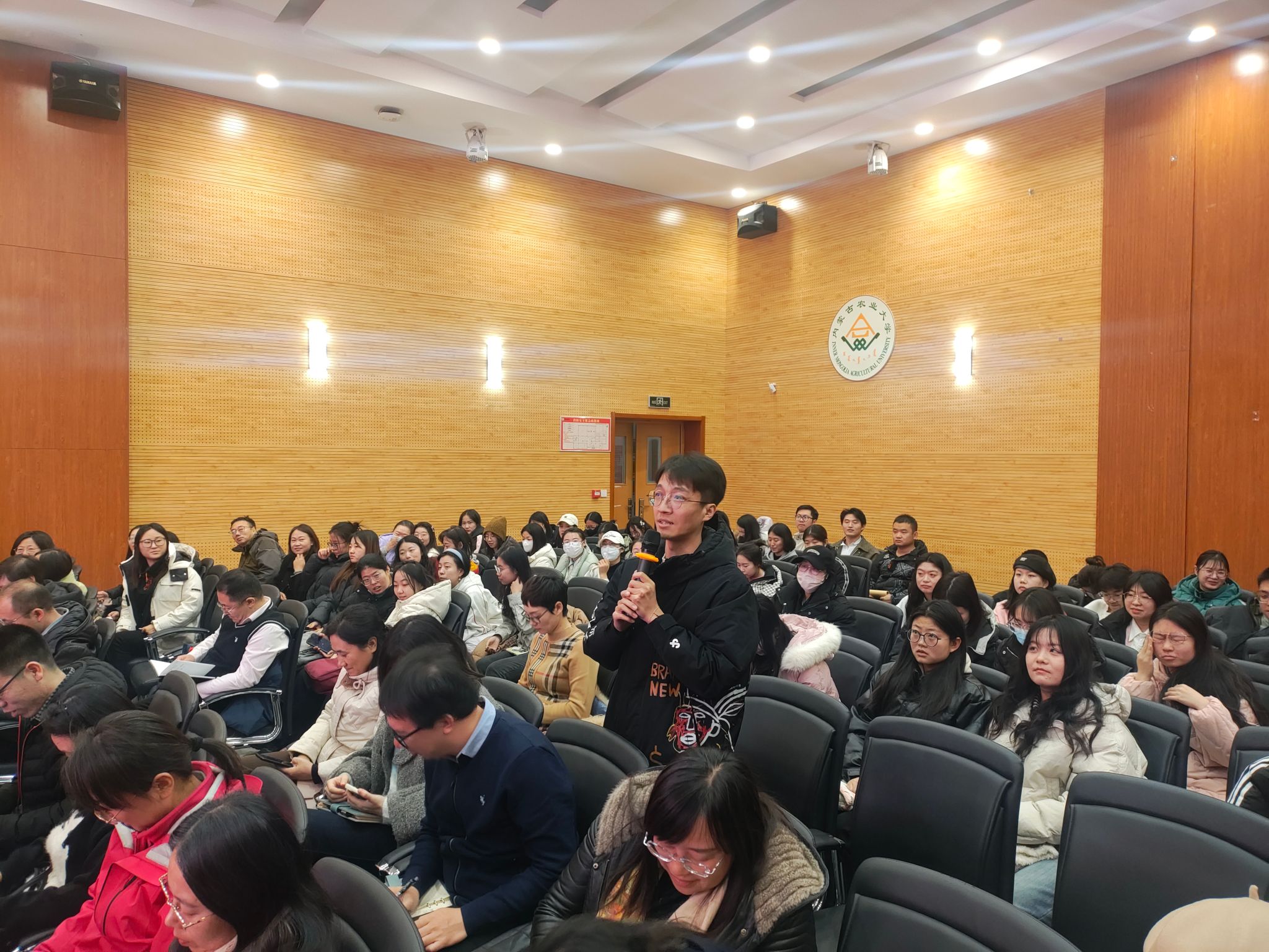 讲座结束后,柯教授耐心地与在场的师生进行了深入的交流与互动。柯教授不仅回答了两位老师提出的问题,还主动分享了自己的社交媒体账号,表示愿意与更多的师生建立联系,继续进行学术上的交流与探讨。互动过程中柯教授特别推荐了自己的专著《农业政策概论》一书,在邀请大家阅读的同时还表达了愿意共享自己课件的意愿。这一举动无疑体现了他对教育事业的无私奉献和对年轻一代成长的深切关怀。