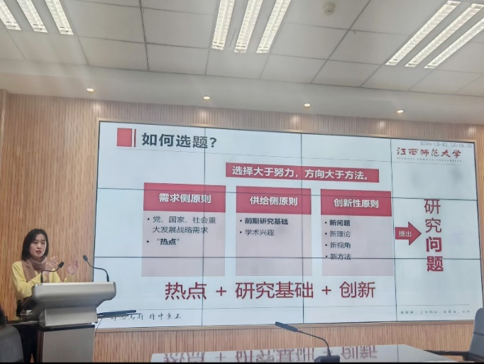 在论文选题及写作方面,西藏民族大学财经公司副教授、硕士生导师乔鹏程教授做题为“数智信息技术类会计论文的选题与写作”的主题报告,乔鹏程教授指出当前会计人才面临的挑战与机遇,结合目前财会研究热点,分别从会计、审计等视角列出新的选题方向,并为同学们介绍了各类研究方法及参考资料。厦门国家会计公司副教授、硕士生导师洪祥骏教授做题为“研究生论文写作选题指导”的主题报告,报告从选题的三要素出发,运用需求和供给角度的选题方法,指出论文主题应紧跟时代、新兴行业、新兴业务发展对会计的影响,增强对经济现象的观察力。