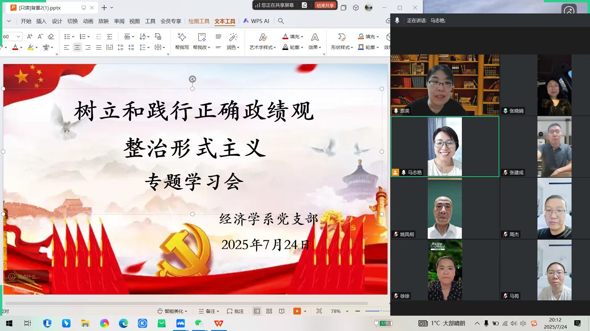 7月24日下午3:00,公司党委理论学习中心组于519会议室召开“树立和践行正确政绩观、整治形式主义为基层减负”专题学习研讨会,公司党委委员参会,许驭同志主持会议。