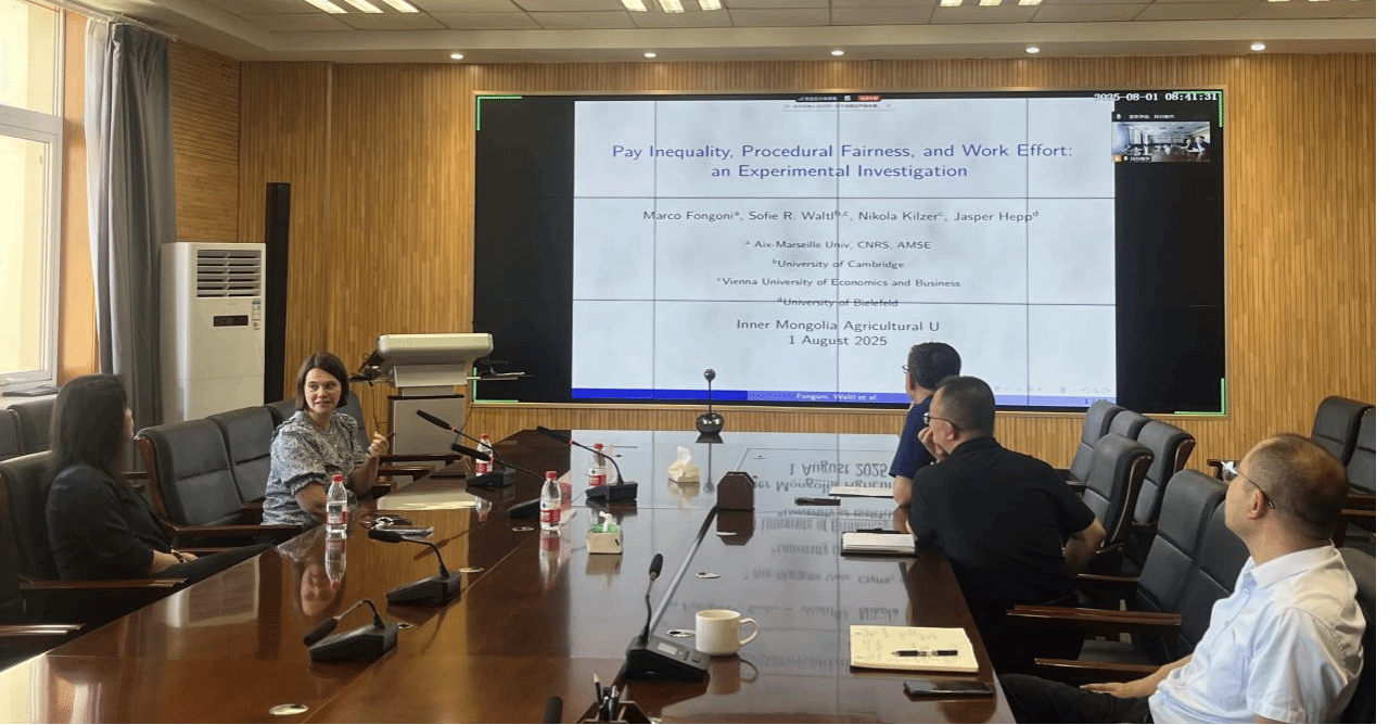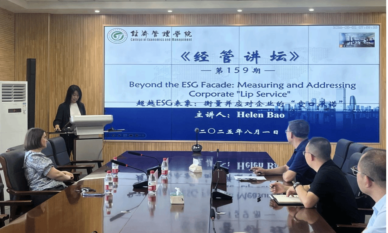 Helen Bao教授(土地经济系教授、跨学科空间分析实验室主任)带来题为“Beyond the ESG Facade: Measuring and Addressing Corporate "Lip Service(超越ESG表象:衡量与应对企业的‘口头承诺’)”的主题讲座。Sofie Waltl助理教授以“Pay Inequality, Procedural Fairness, and Work Effort: an Experimental Investigation(薪酬不平等、程序公平与工作努力程度:一项实验研究)”为题进行了精彩分享。