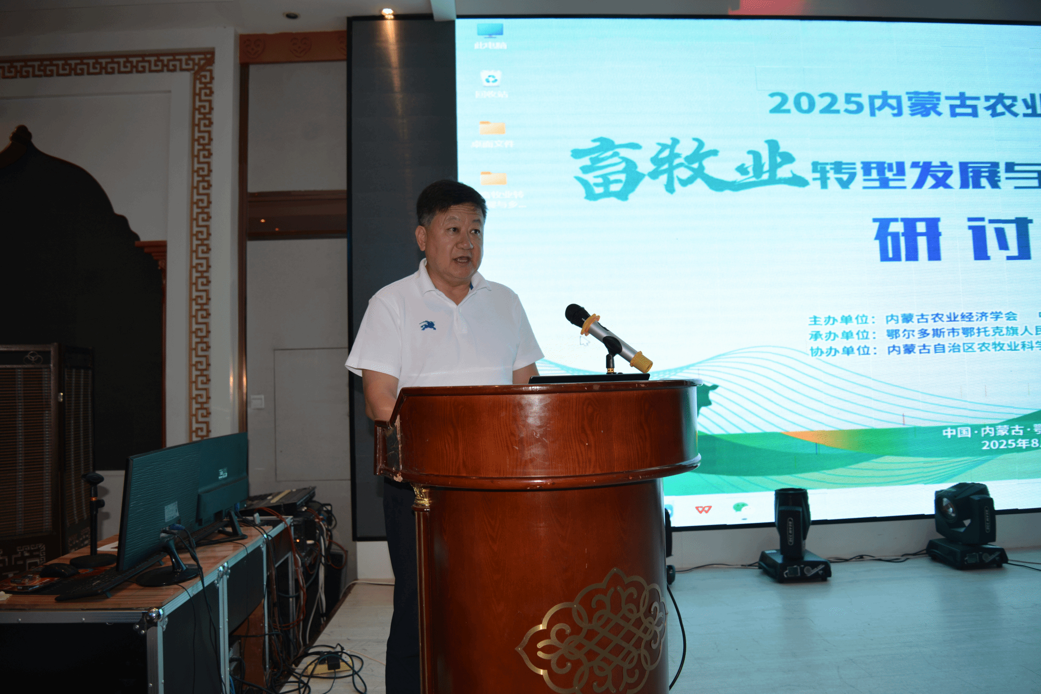 8月6日上午,2025年内蒙古农业经济学会年会暨“畜牧业转型发展与乡村全面振兴”研讨会正式开始。内蒙古农业经济学会会长修长百主持仪式并致欢迎辞,他代表内蒙古农业经济学会向出席研讨会的各位专家和学者表示热烈的欢迎和衷心的感谢,并希望通过本次研讨会加强各位专家学者之间的学术交流,为内蒙古探索具有地方特色的畜牧业高质量发展与乡村全面振兴协同推进之路提供关键思路和智力支持。随后,中国农业科公司农业信息所党委书记、研究员刘继芳,内蒙古社科联党组成员、副主席朱晓俊,内蒙古自治区农牧业科公司副经理孙海洲,鄂托克旗副旗长郭朝辉分别向大会致辞。