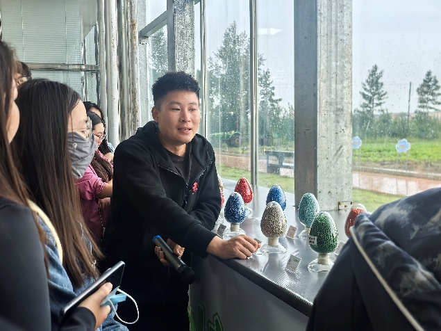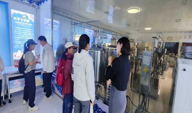 8月21至22日,在谢尔塔拉农牧场水晶花宫,温室管理人员侯宪勇先生向员工们介绍了水肥一体化与循环技术、空间立体化种植技术、种子技术,通过营养液精准供给实现作物高效生长的模式、种子丸粒化技术如何实现精量播种,让师生们近距离接触到先进的农业种植技术,拓宽了视野。在三河牛科技文化馆,员工系统地了解了三河牛的起源、培育改良、品种特征及发展现状。师生还在第一牧场参观现代化挤奶设备,学习如何通过自动化操作保障原奶质量与生产效率,感受了现代化饲养模式。在乳制品生产体验中心体验民族乳制品生产加工模式,工作人员为大家详细介绍了奶酪生产全流程,从原料奶检测到成品包装、乳制品加工的关键环节。