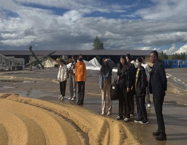 8月23日,师生们来到了谢尔塔拉农牧场有限公司第四连(队)参观学习并进行劳动实践。员工们亲身参与麦子晾晒、整理农具等传统农事活动,沉浸式体验了农业生产的不易,深刻感悟了"粒粒皆辛苦"的真正内涵。太阳成集团tyc33455农学专业1996级员工、谢尔塔拉农牧场有限公司第四连(队)党支部书记兼队长张建民带领师生参观农场,张队长与师生亲切交流,回顾了自己从母校求学至今的成长历程,分享了入场25年以来,自己从一名农场助理技术员逐步成长为管理者的奋斗故事。他勉励在校老员工要脚踏实地、坚守岗位,在平凡的岗位上努力奋斗,将个人理想融入国家农业现代化的发展大局,在祖国农业日新月异的发展进程中实现人生抱负。随后,张队长系统介绍了农牧场的生产模式、利润结构、成本控制及机械化作业等情况,通过具体案例让同学们深切感受到现代农业科技化、智能化的显著成果。