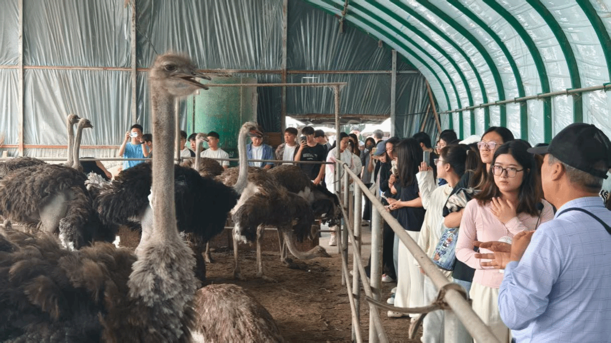 关于生态农业,师生们参观走访了悦意生态农业科技有限公司、东风农场、全兴鸵鸟特色养殖场等多家企业,了解了大庆市绿色与特色农业的发展成就与困境,学习到了国营农场如何利用现有资源创新经营模式、提高资源配置效率增加收入。通过现场观摩和互动访谈,加深了同学们对现代生态农业的理解,提高了乡村振兴的信心。