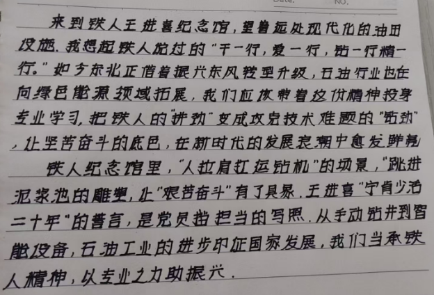 在“铁人”纪念馆,聆听王进喜和其他石油工人的英雄事迹,“宁肯少活二十年,拼命也要拿下大油田”的豪迈誓言、泥浆池里奋不顾身的身影、“人拉肩扛”的创业史诗变得触手可及。“三老四严”是大庆石油工人在会战实践中形成的作风与精神:对待革命事业,要当老实人,说老实话,办老实事;对待工作,要有严格的要求,严密的组织,严肃的态度,严明的纪律。在能源经济转型的时代背景下,“铁人精神”展现了新的维度:它不仅是艰苦创业的符号,更成为精益求精的工匠精神、跨界创新的破壁意识。每个时代都需要“铁人”,只不过奋斗的战场从荒原转换到了科技实验室、深空探测站、数字孪生系统等场景。党员同志应践行“三老四严”的求真务实的优良作风,强化个人服务国家战略的责任担当。