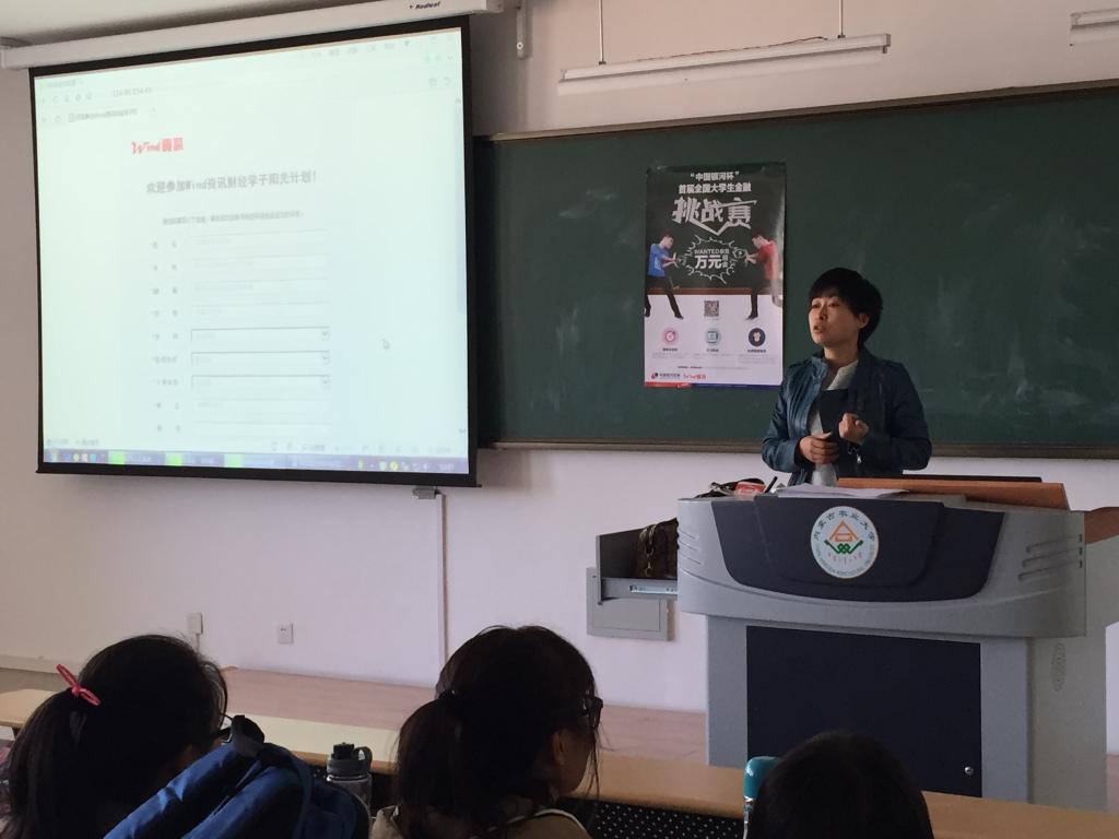 4月16日上午10点,在新区南教A424教室,金融系邀请上海万得信息技术股份有限公司技术人员为公司14级全体金融专业员工开展专业知识讲座。金融系白静、张博老师参加了讲座。讲座开始前,白静老师介绍了讲座的主要内容和预期目标,要求大家不但要任真学习还要积极动手参与。讲座主要对证券投资方面的知识内容进行了讲解,并通过万德公司数据库平台为员工们展示了如可利用有关软件捕捉、分析市场信息,如何运用相关指标对股价指数等数据进行梳理、对比、分析并形成投资决策。本次讲座为金融系一年级员工带来一次较为全面的知识体系和实际操作相结合的展示,员工们也表现出极其浓厚的兴趣,现场互动热情较高。本次讲座为员工们今后更好地掌握、运用金融专业知识解决实际问题培养了兴趣,奠定了基础,有助于加强公司教学与实践相结合的水平,充实了公司校企合作的具体内容,有助于校企共同为社会培养合格专业人才。
