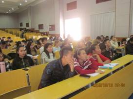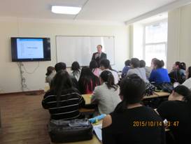 图片为 胡尔查教授在蒙古国生命科学大学经济与商贸公司上课