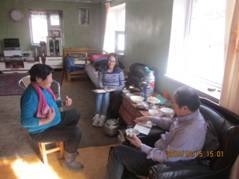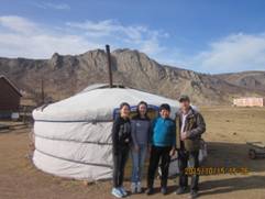 图片为 胡尔查教授带他的蒙古国研究生诺明高娃及2015年来公司实习的蒙古国生命科学大学部分本科生一起在牧户宁布家调研。宁布(女)是乌兰巴托市那里呼区古尔恒嘎查牧民,今年72岁,8个孩子都在城里生活。近年来蒙古羊肉价格走低,去年把家里的380只羊一次卖给了当地牧民。该地区属气候寒冷的山区,所以宁布牧户主要饲养对寒冷山区适应性较强的牦牛,现有45头牦牛和11头蒙古牛。宁布的主要收入来源是奶制品加工销售,去年国家给70岁以上牧民盖了砖木结构平房,蒙古包就成了专用奶制品加工车间。问宁布今年打算卖几头牛时,回答说以后不打算卖牛,主要卖奶制品,看来宁布心目中牛的价值不仅仅是个生产资料和生活资料了。