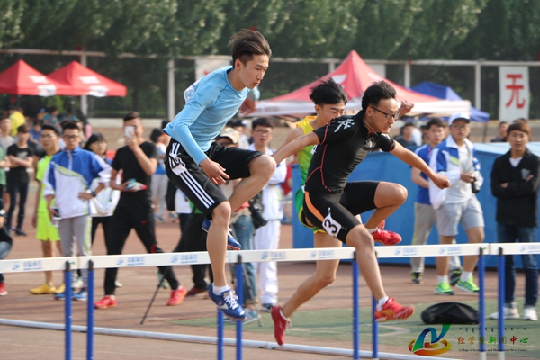 枪声未响,李智同学和智光同学便熟悉栏的高度做着最后的心理生理调整。枪声一响,他们便以迅雷不及掩耳之势,让观众看到了他们最快的反应,4步、5步,跨栏,再跑再跨。在第四栏李智便将其他选手远远落在身后,奋力奔向终点。随后,智光也与其他选手拉开距离。随着最后一次完美跨越,李智夺得本项目桂冠,智光获得第四,于此同时,经管学子的声声加油也将比赛推向了高潮。