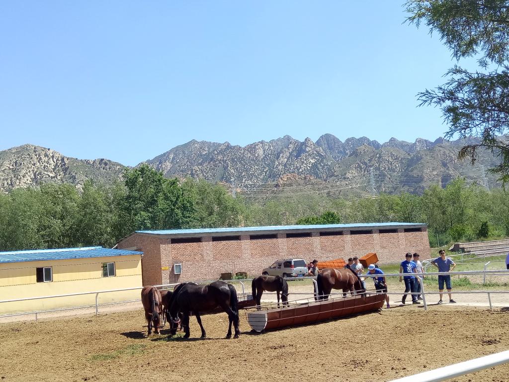 在教学马场内,团队详细了解了该基地占地面积、教学马匹数量。参观了马厩、标准运动场、驯练场、调教圈、跑道、洗马台、草料房、修蹄室、诊疗室、鞍具房等配套设施。