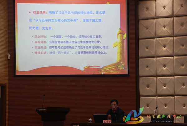 赵国年书记在总结时指出,蔡常青书记的报告主题鲜明,诠释深刻、重点突出,展现了深厚的理论功底和广博的学识修养。赵书记强调,全院师生特别是党员干部要认真读原著、看原文,吃透精神,结合“两学一做”学习教育,密切联系思想和工作实际,学思践悟、融会贯通,内化于心、外化于行,把学习宣传贯彻十八届六中全会精神继续推向深入。