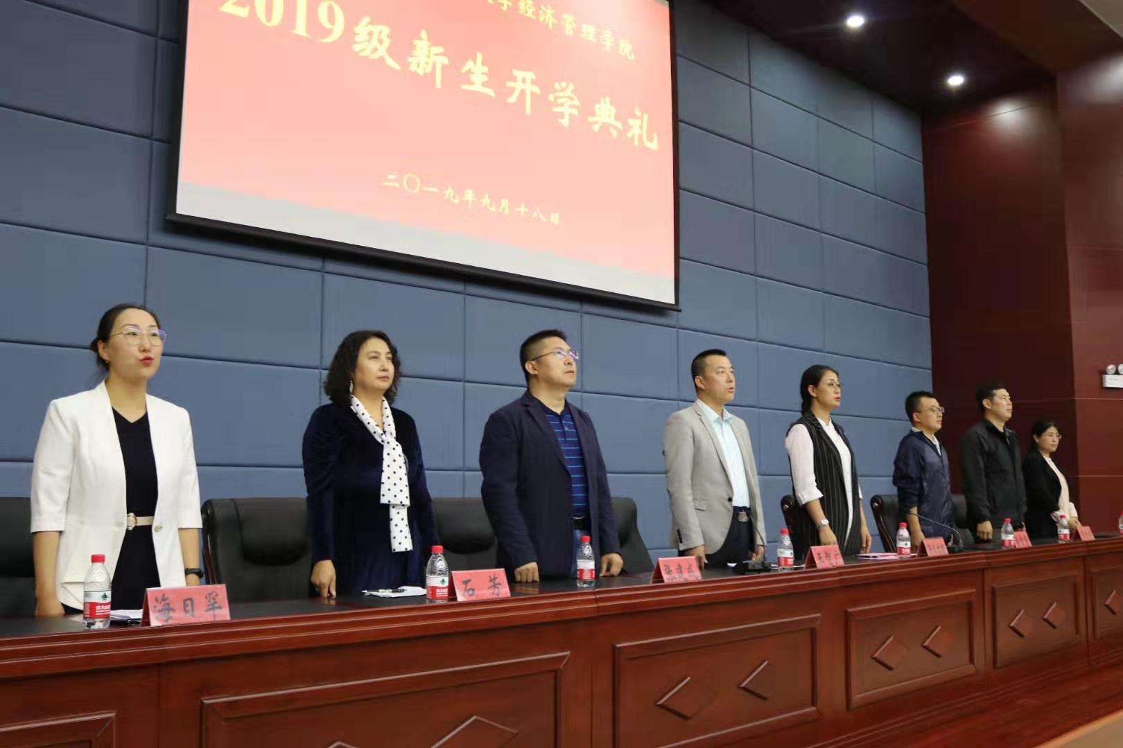 金色九月,华章再启。9月18日晚7:30,经管院2019级新生开学典礼于生科楼科技报告厅隆重举行。公司党委书记王智广,金融学系主任侯国庆,会计学系主任石芳,市场营销系主任杨艳玲,经理助理、经济学系主任张建成,经理助理柴智慧,团委书记海日罕及2019级班主任代表出席本次典礼,公司党委副书记斯日古楞主持典礼,全体新生积极参加。