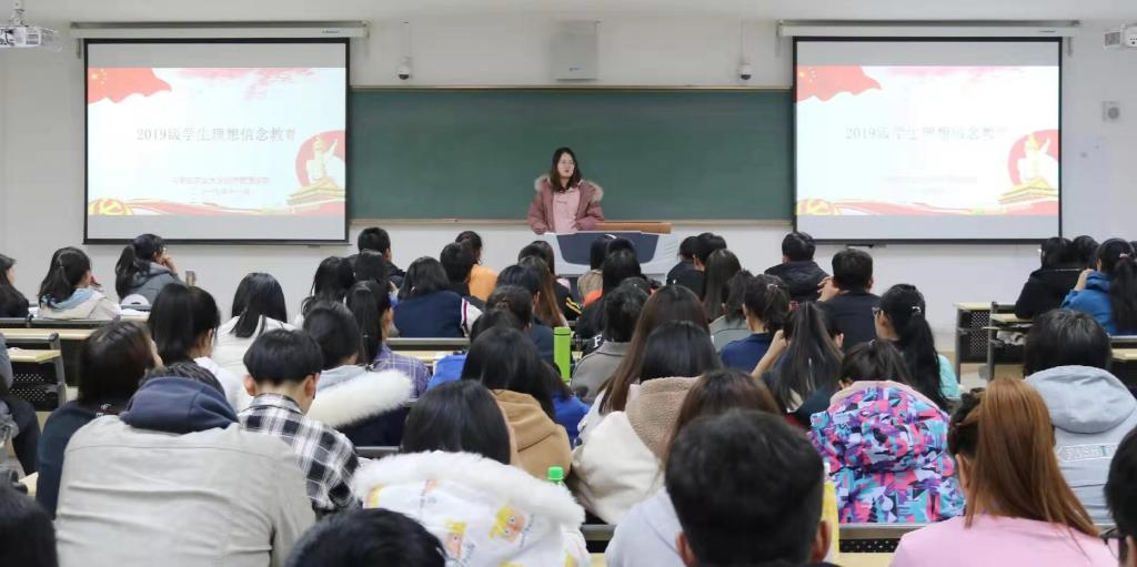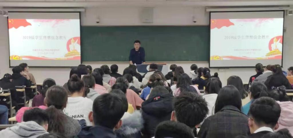 11月12日晚7:00,公司分别于南教114、224、322组织开展2019级员工理想信念教育。本次讲座由员工工作办公室老师郭祎天、苏宁巴乐、李颖担任主讲教师,全体19级员工参加。